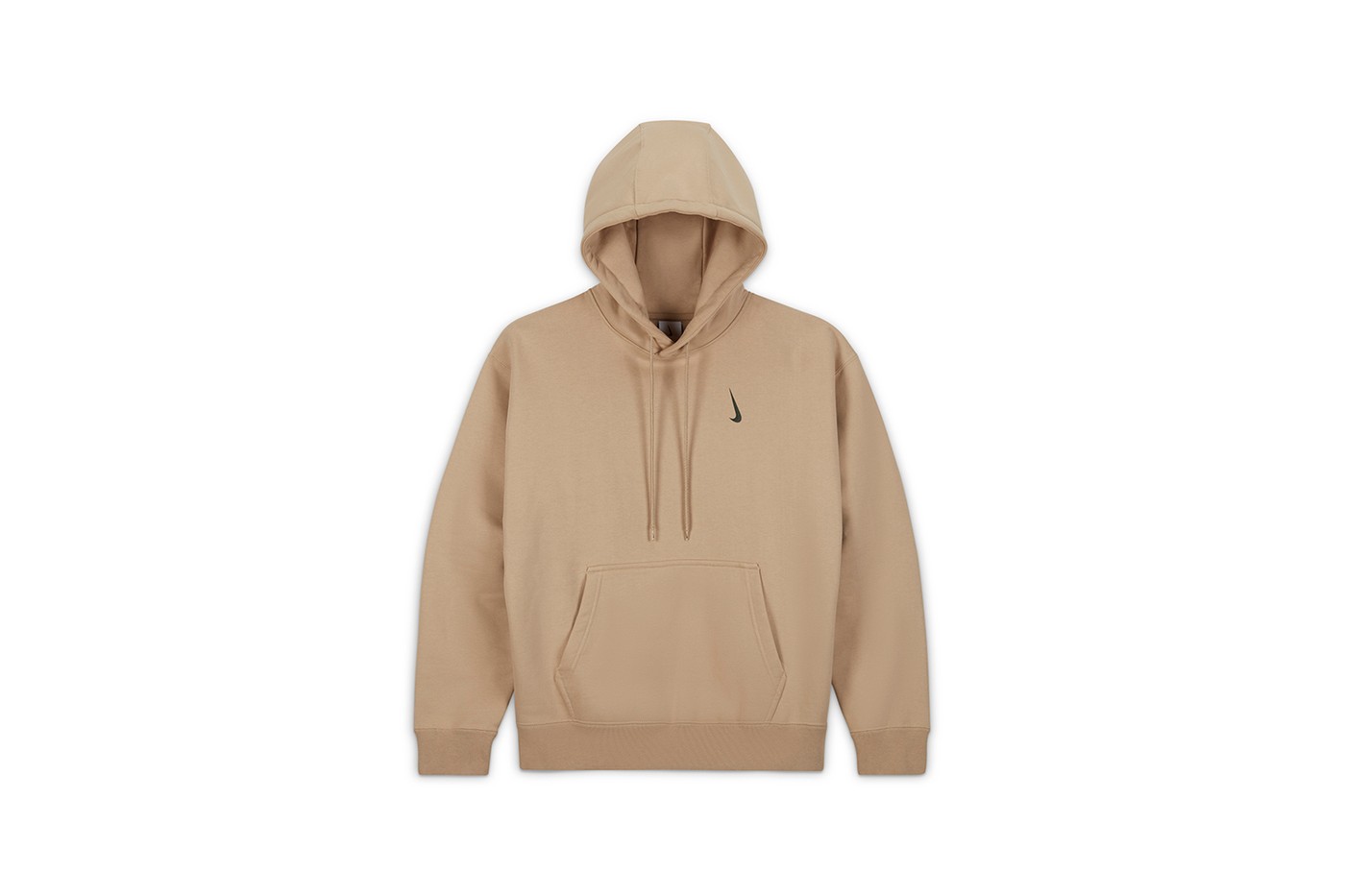 采用与鞋款呼应的大地纯色设计,包含卫衣、卫裤及 T 恤。