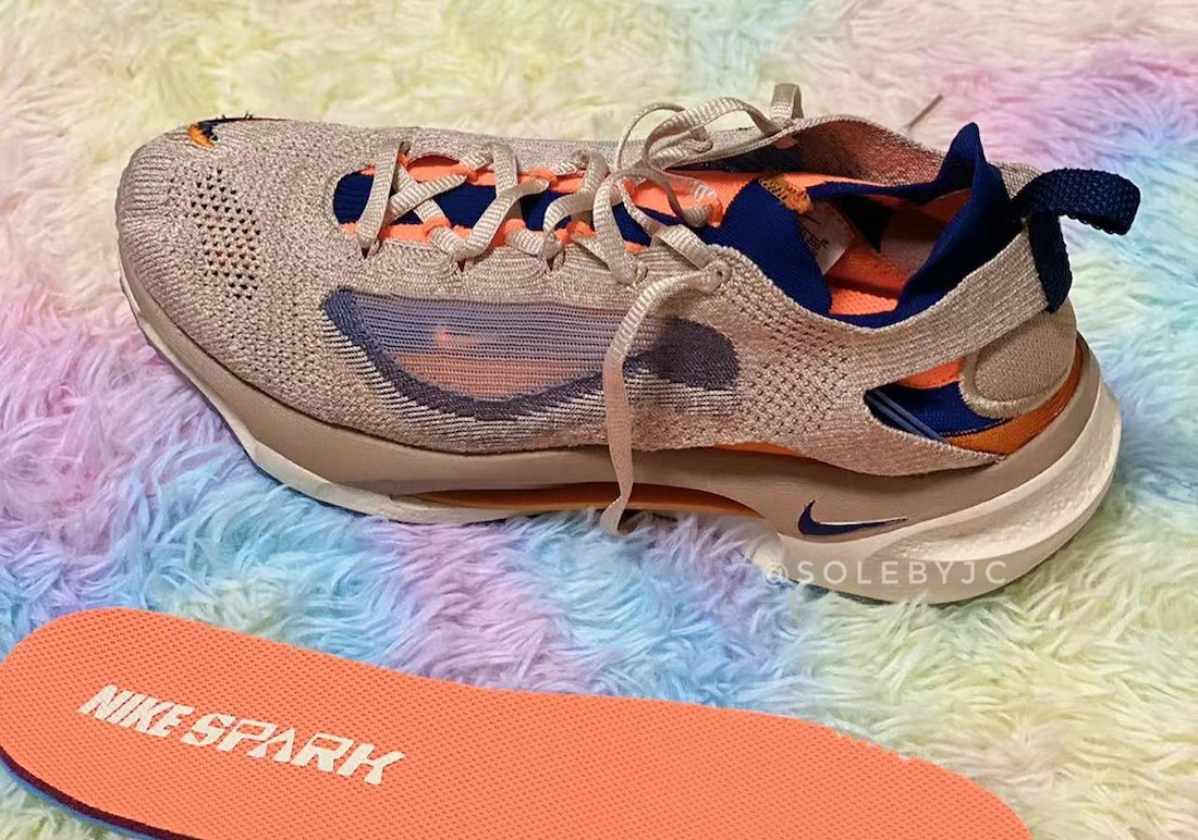 搭配 Nike Spark 品牌鞋垫和半透明的外底,完成全部设计。