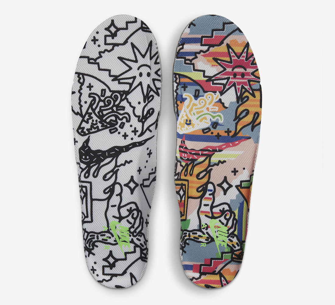 鞋垫和随鞋附赠的吊牌上满印的涂鸦手绘风格图案,彰显流行艺术主题。