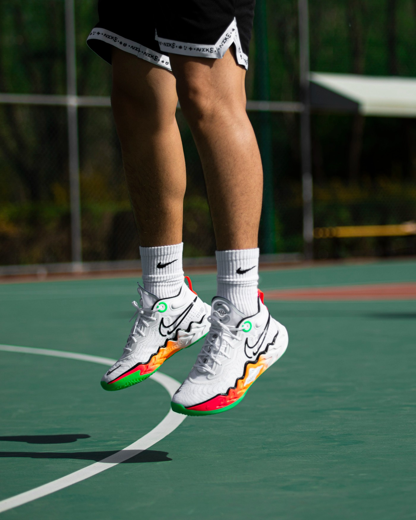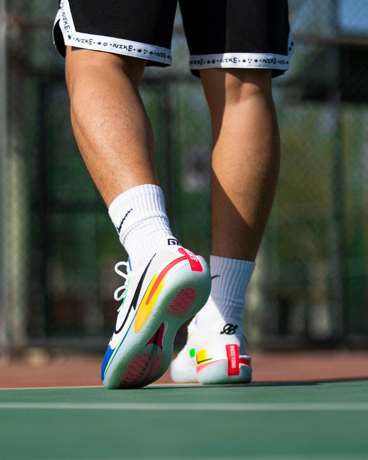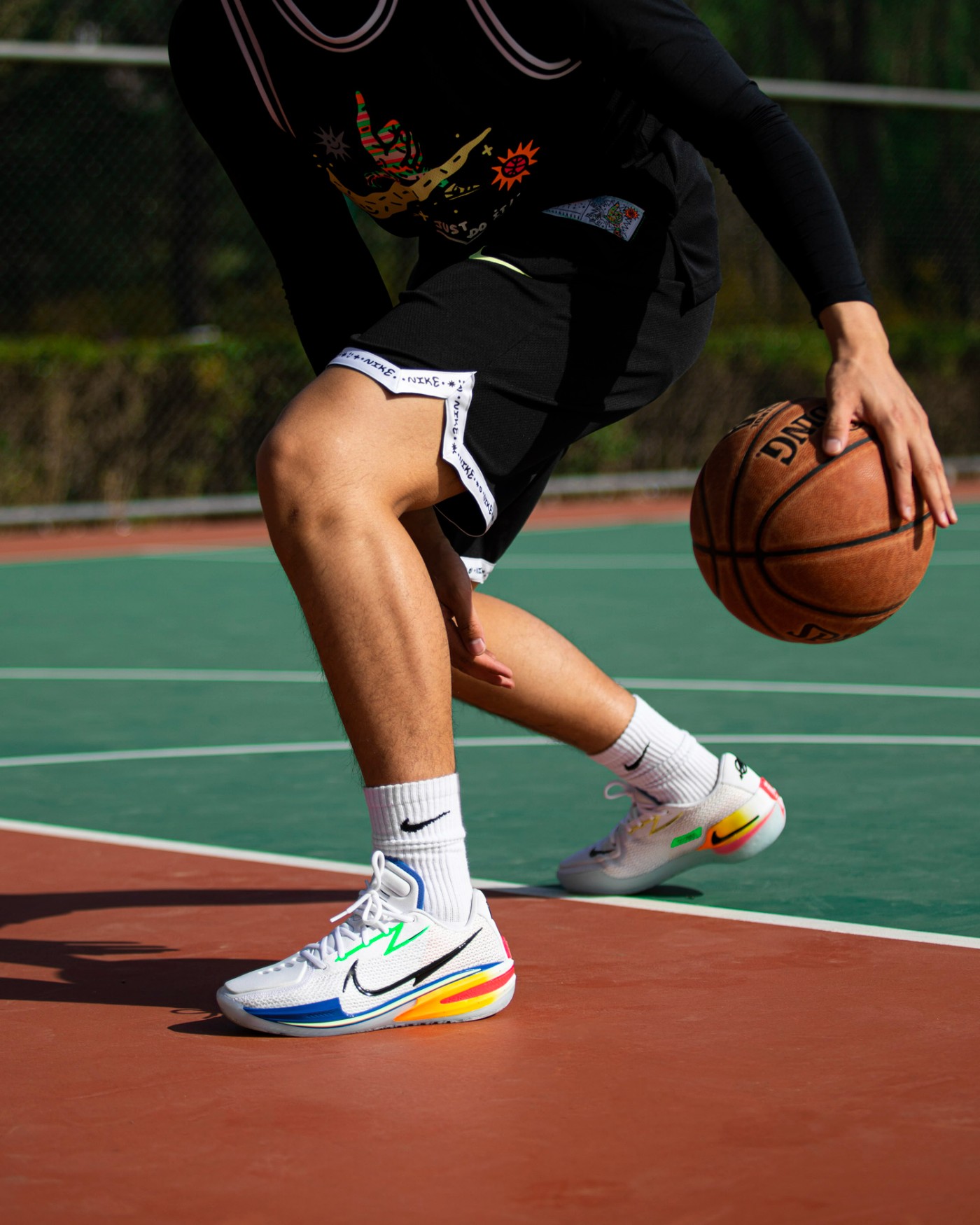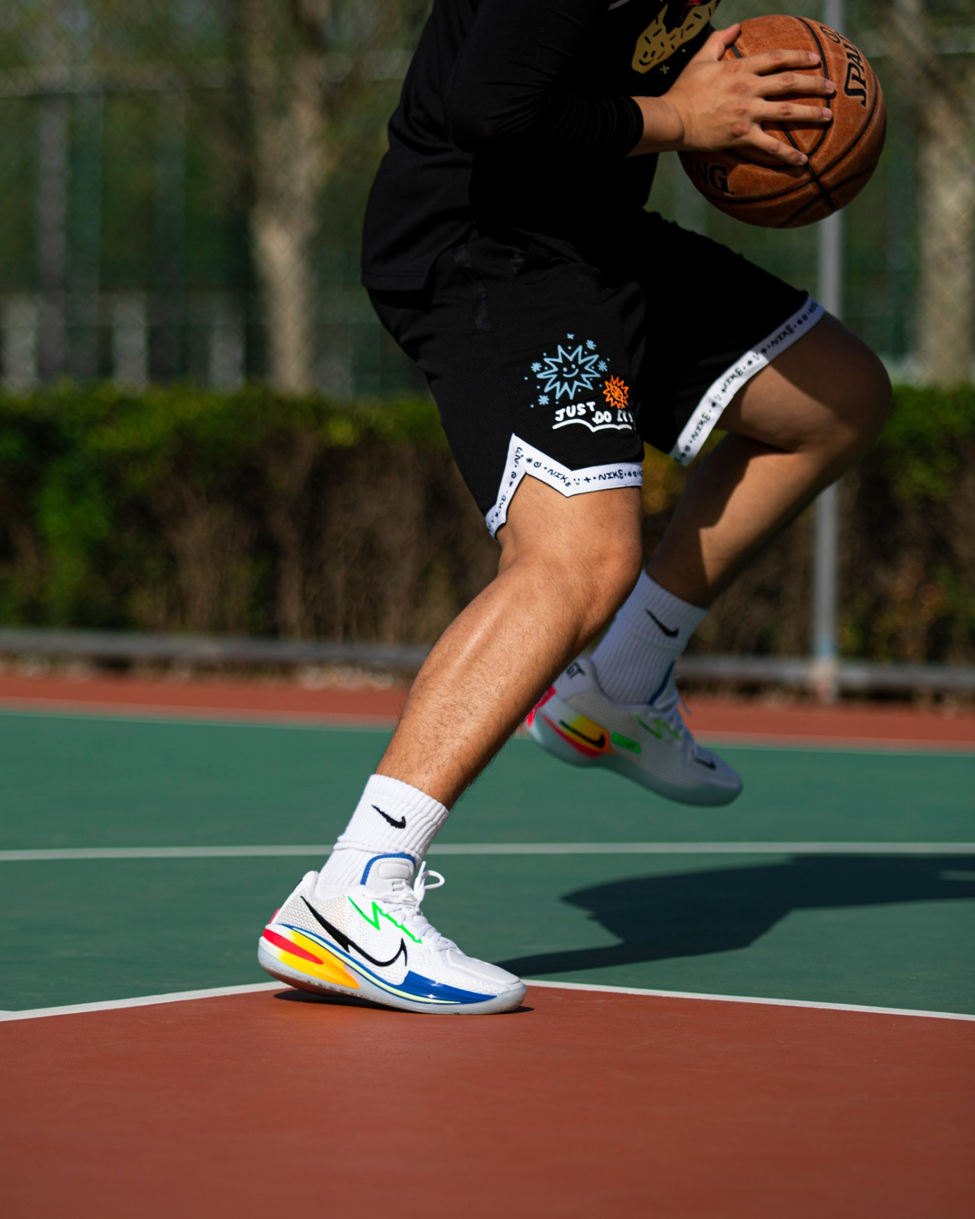 咱们先从当下最为大热的 Air Zoom G.T. Cut 说起,配色上以白色为基础,在鞋面各处追加彩色点缀。