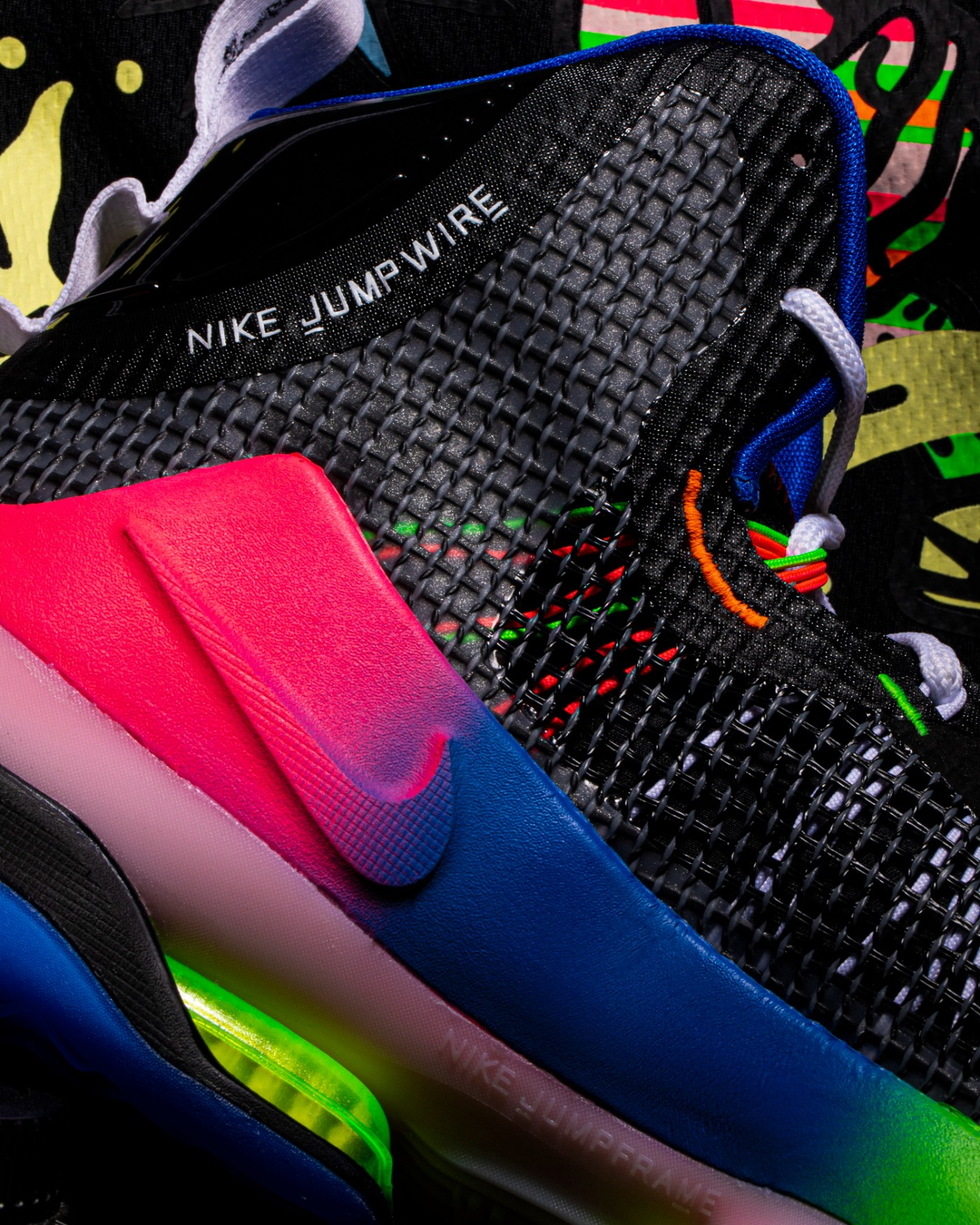 从鞋面就开始彰显科技属性,JumpWire 编织鞋面不仅刚性十足,透气性也有保障,透过内侧还能看到久违的飞线科技。