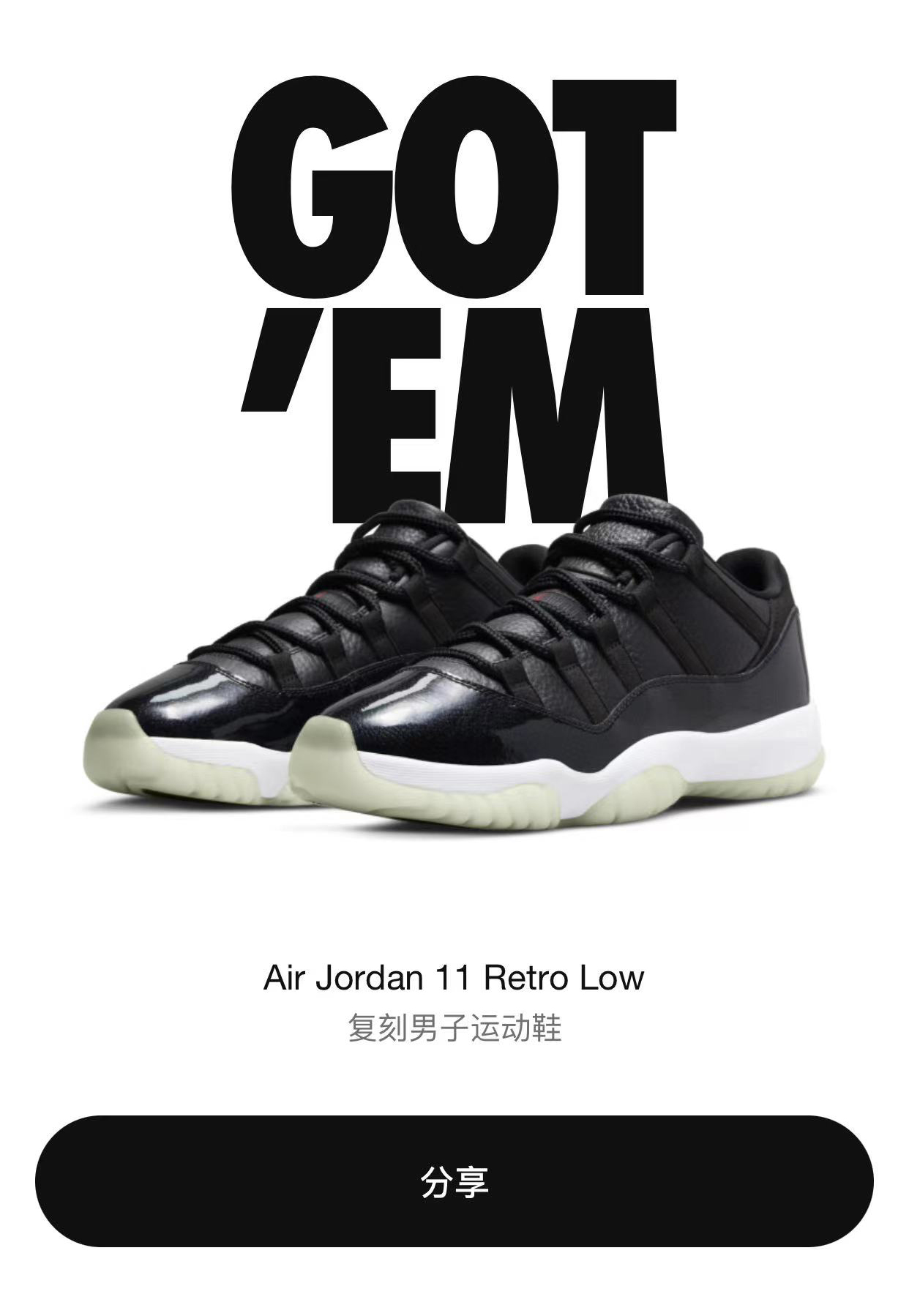 紧接着就是昨天上午,「新白水泥」Air Jordan 4 正式发售之后,SNKRS 专属发售了一波「低帮大魔王」Air Jordan 11 Low。
