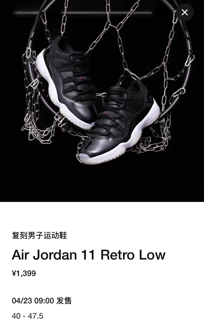 此外,Air Jordan 11 Low “72-10” 已经正式上架 SNKRS, 将于本周六早上 9 点正式发售,定价 ¥1399 元。