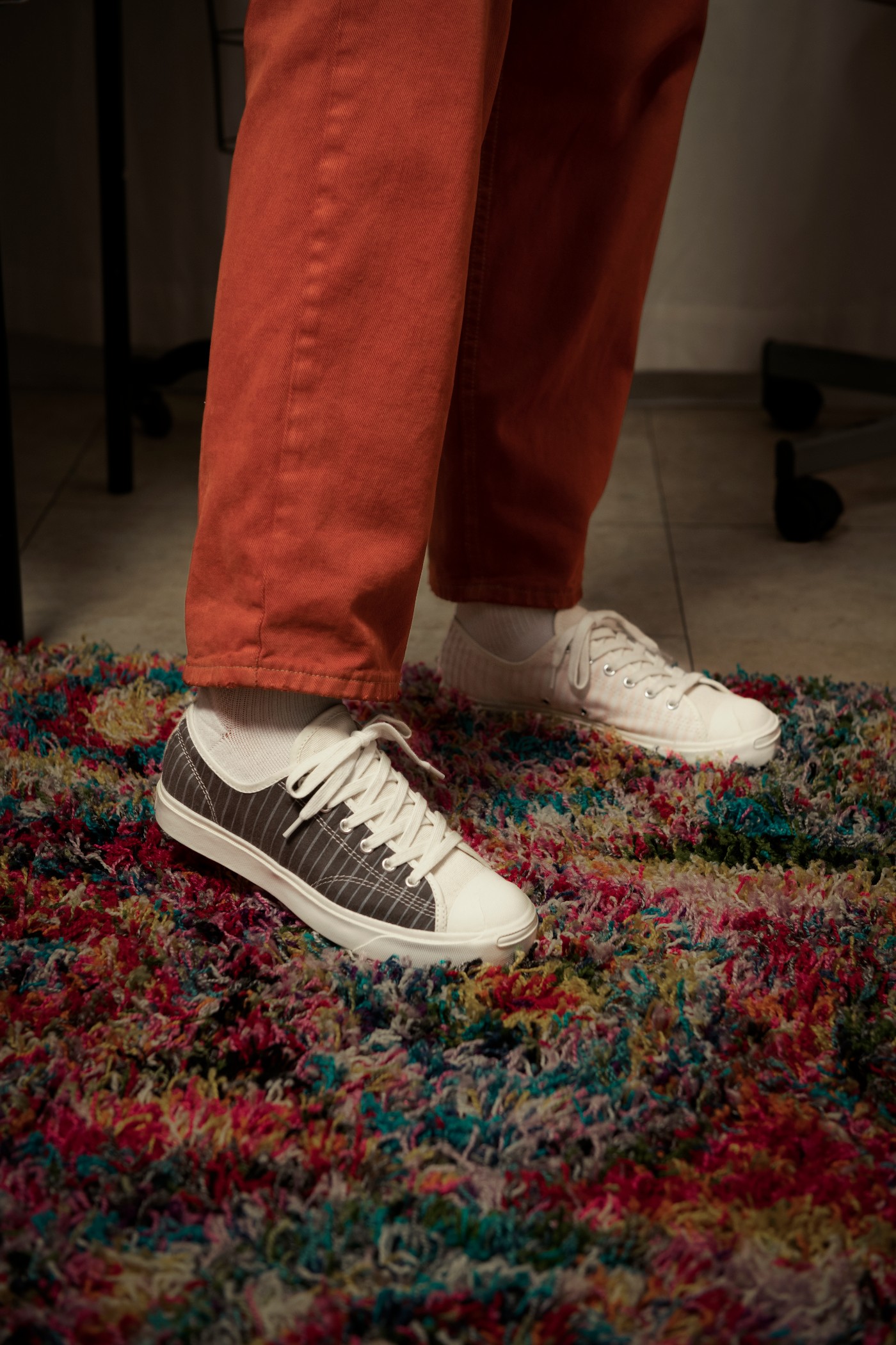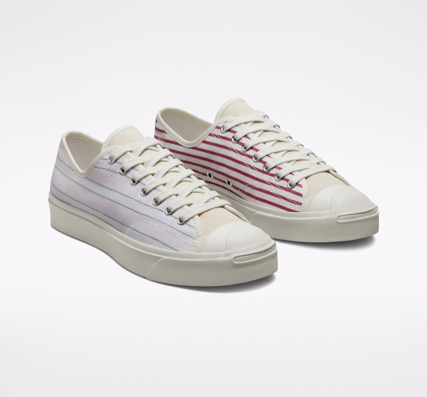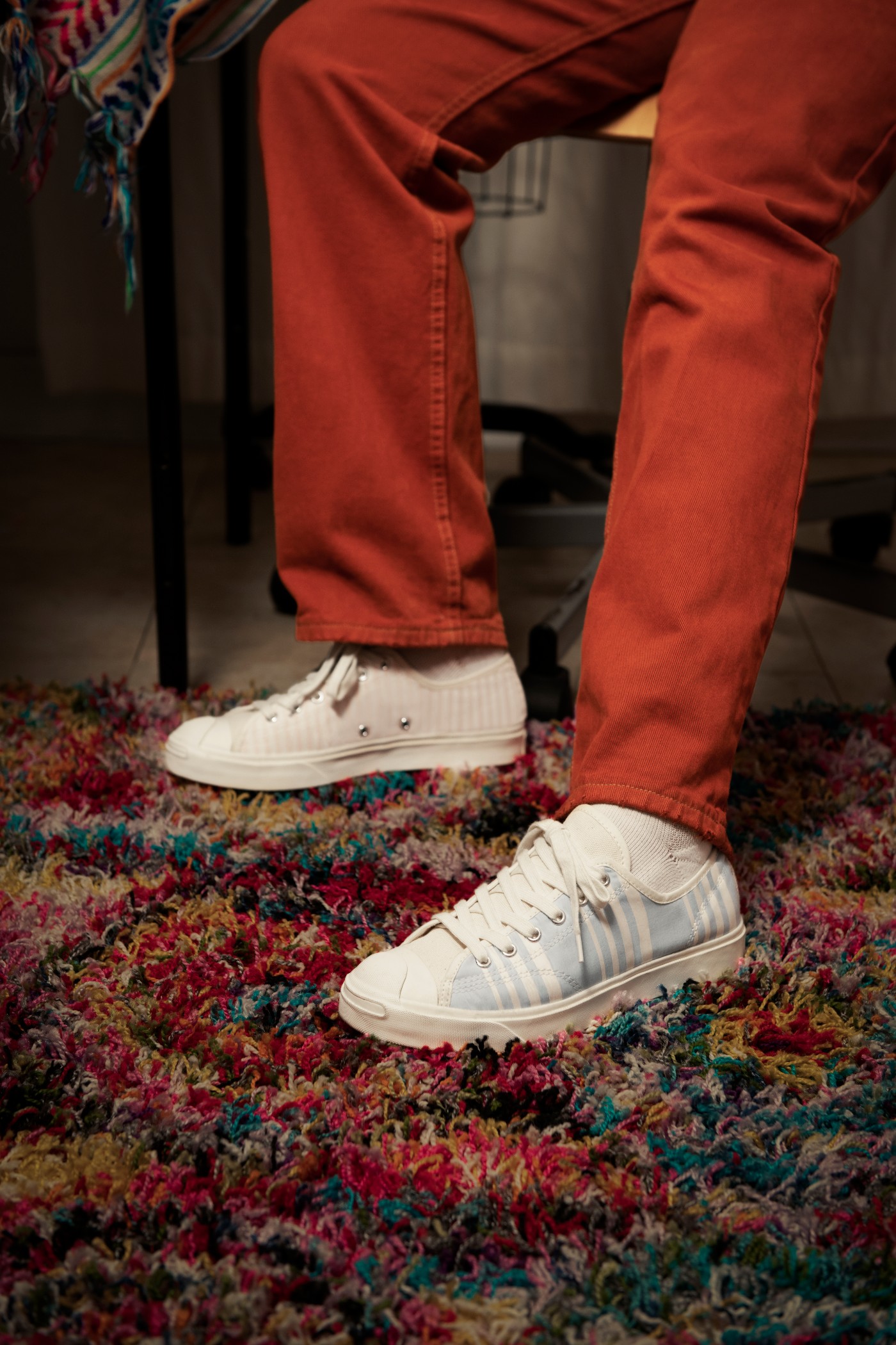 此次第二双联名鞋选用相对小众的 Jack Purcell,低帮的造型更易日常穿着,鞋头「开口笑」的设计非常特别。