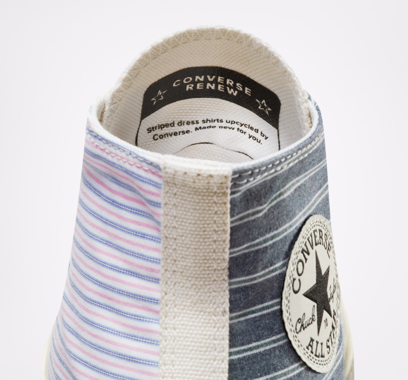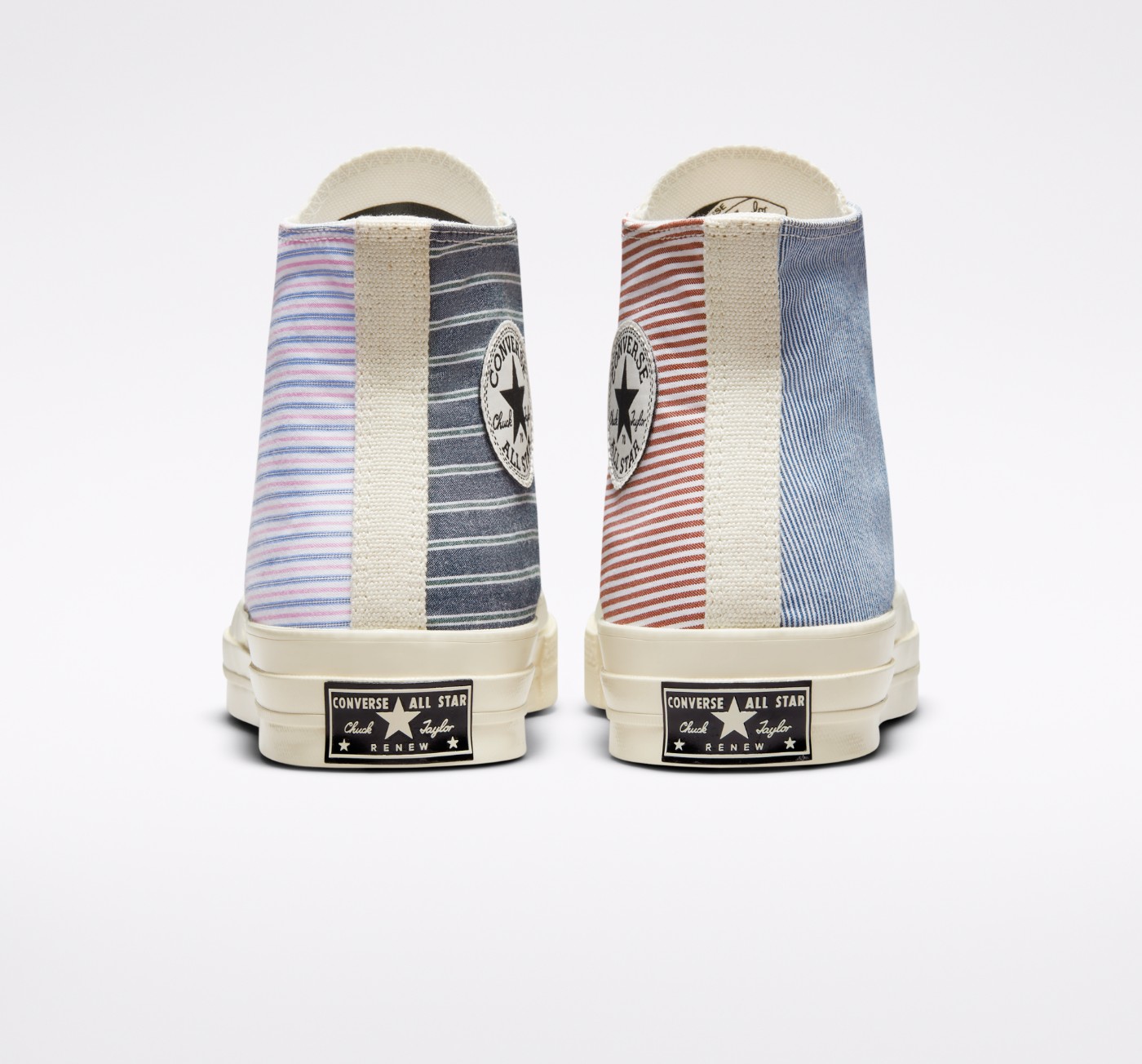 近日双方再次携手,带来全新 Converse Renew 胶囊系列。此次联名系列鞋面采用 Beyond Retro 精心挑选出的古着衬衫布料打造,衬衫上原本的条纹图案布料最终构成独特的 Tri-panel 鞋面,带来浓浓夏日风格。