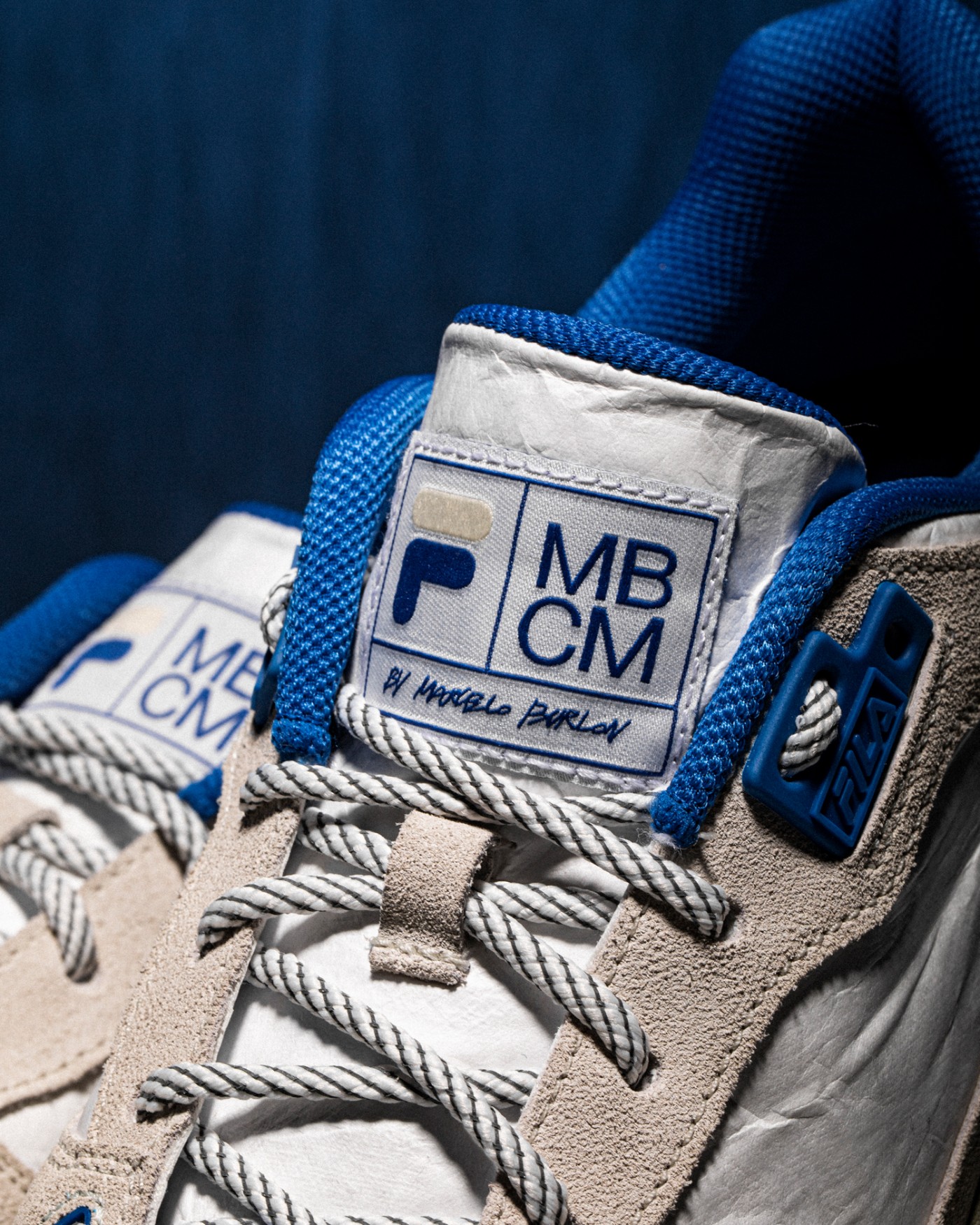 此次联名以灰白色系搭配 MBCM 标志性的蓝色点缀。