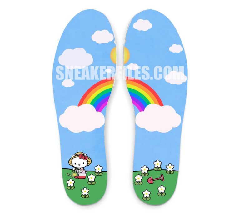 鞋垫将彩虹和 Hello Kitty 浇花图案结合,这样一双可爱值拉满的「梦中情鞋」谁会不爱呢?