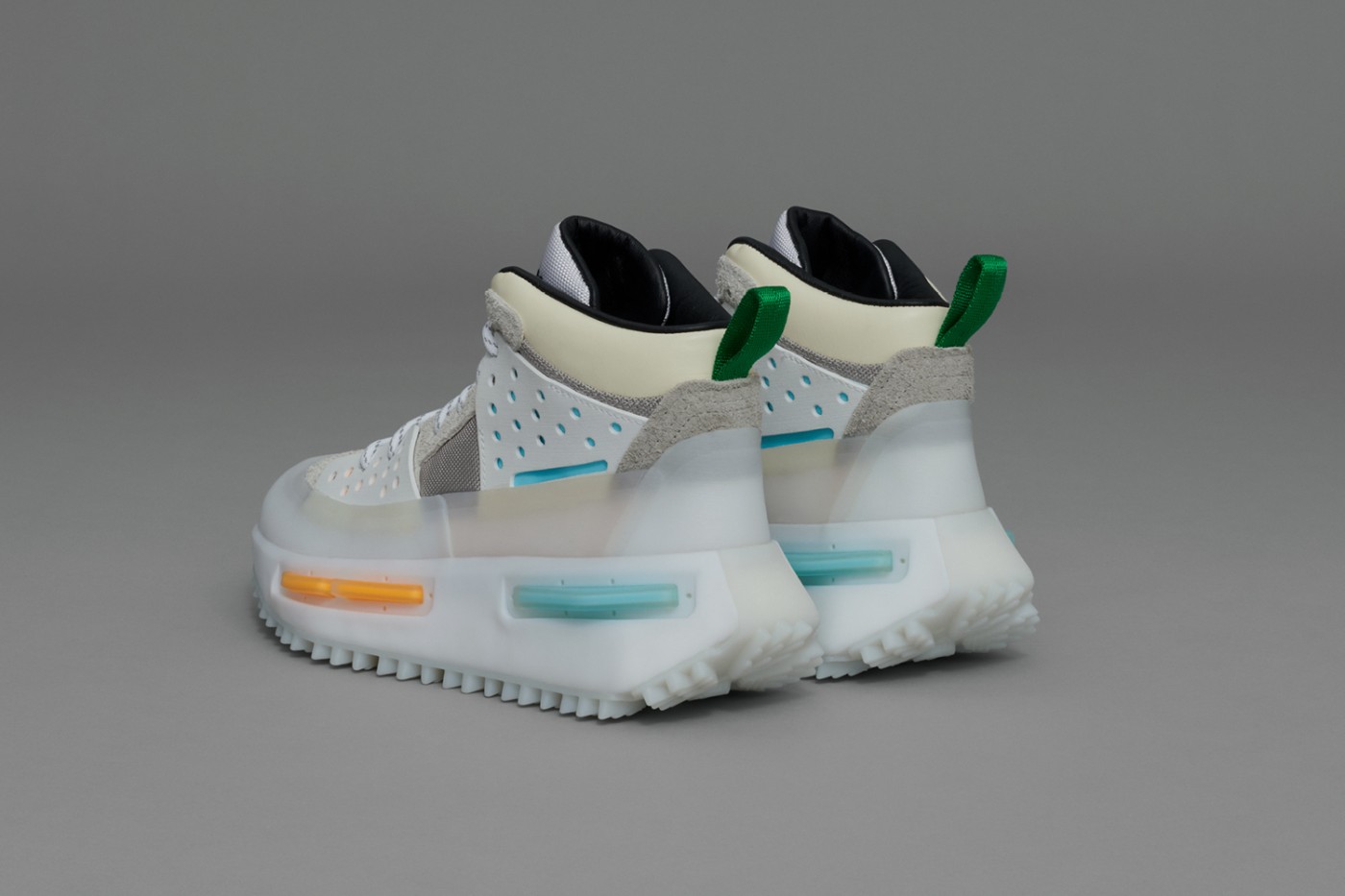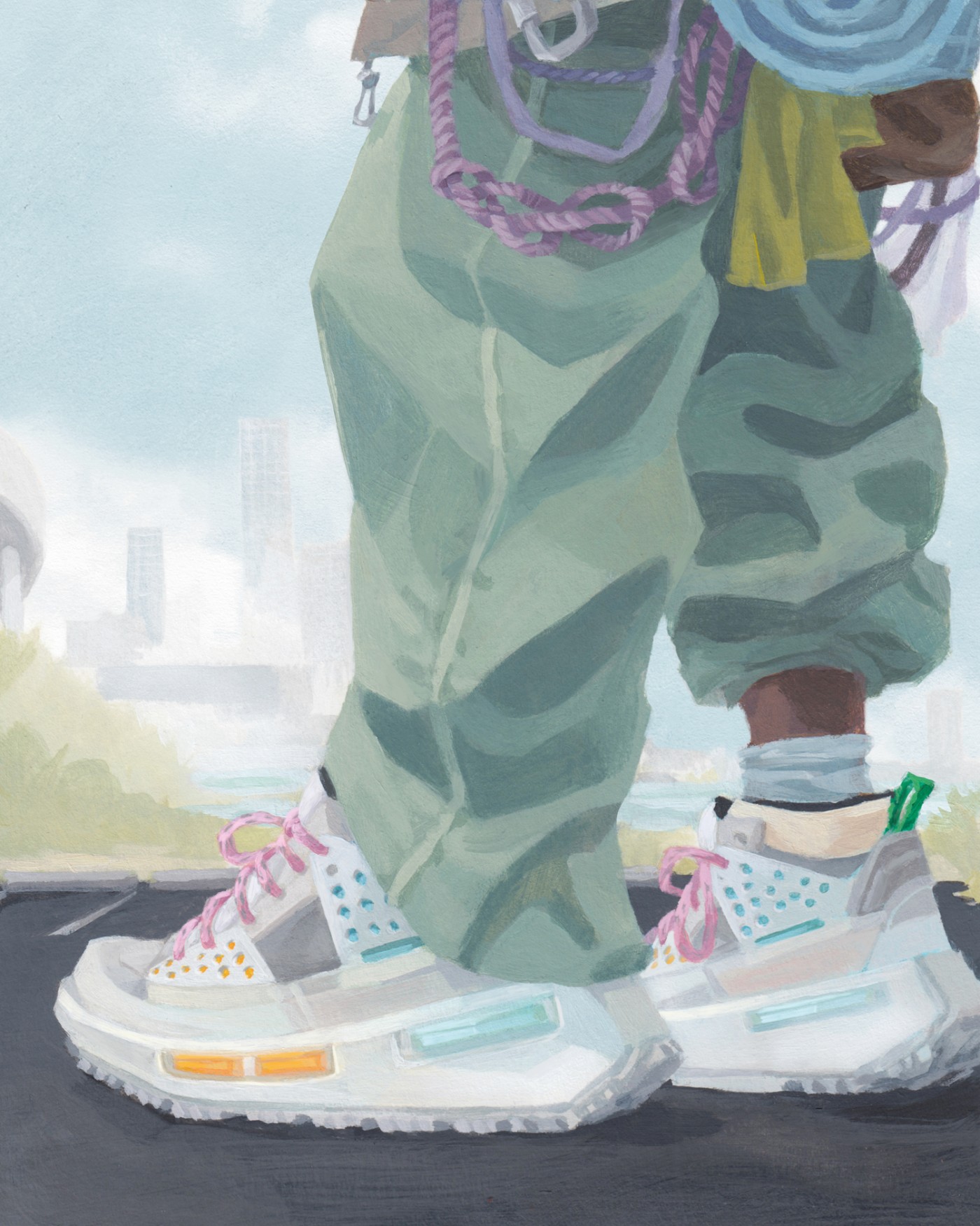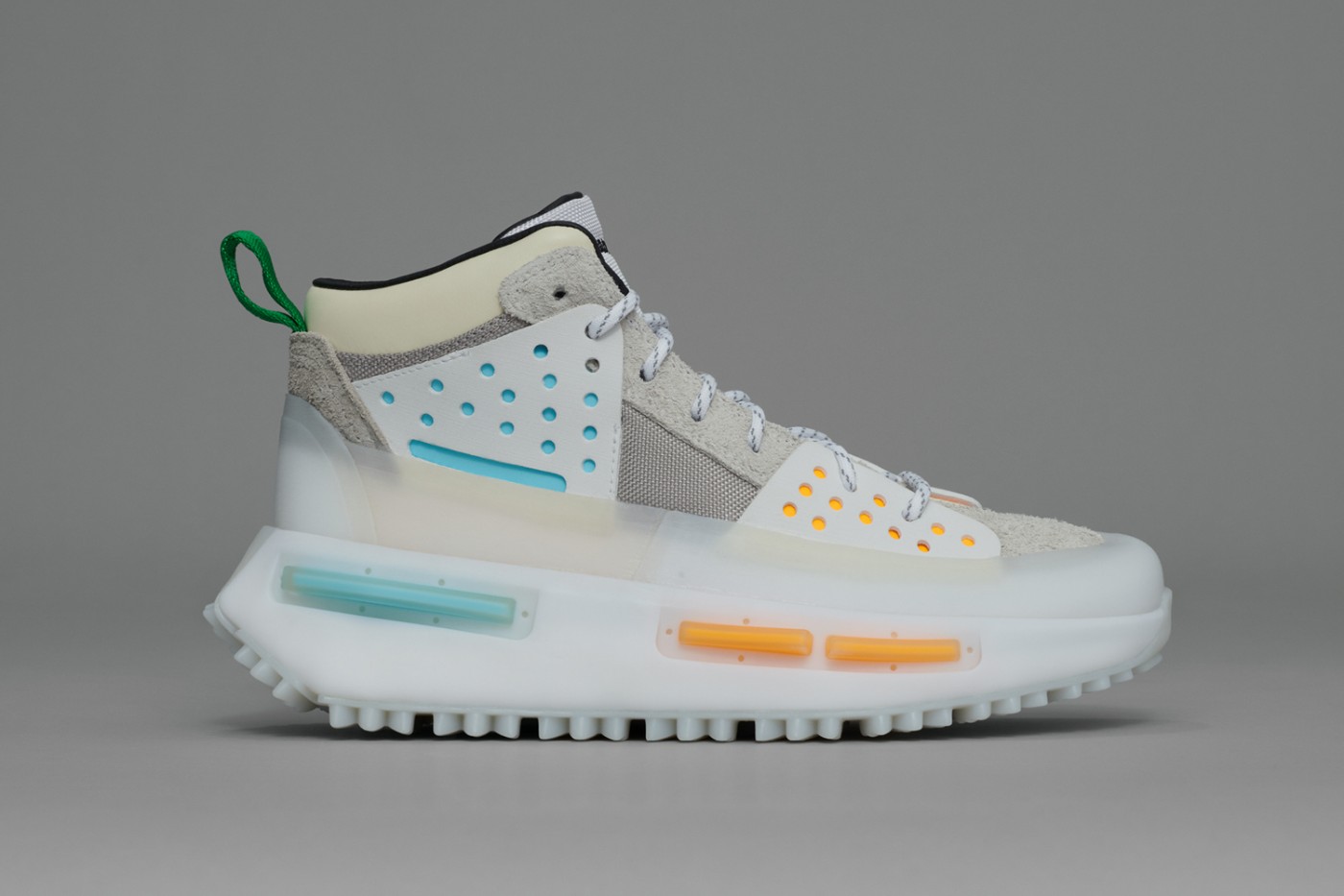 为了配合这款鞋的发布,著名插画家 Gangbox 以其标志性的极致主义风格诠释了一幅插画,创造了一个似乎具备各种可能性的角色,同时也体现了 NMD S1 RYAT 适应于崎岖地形的设计概念。