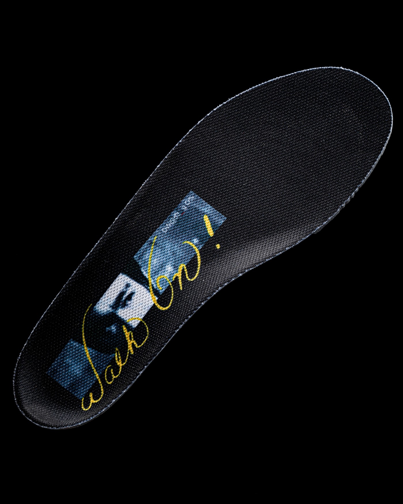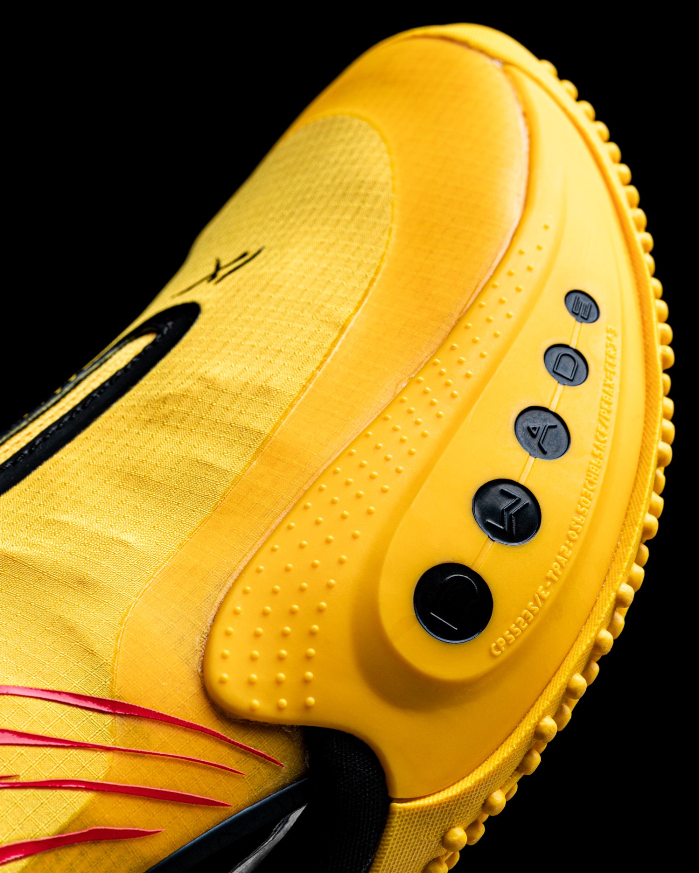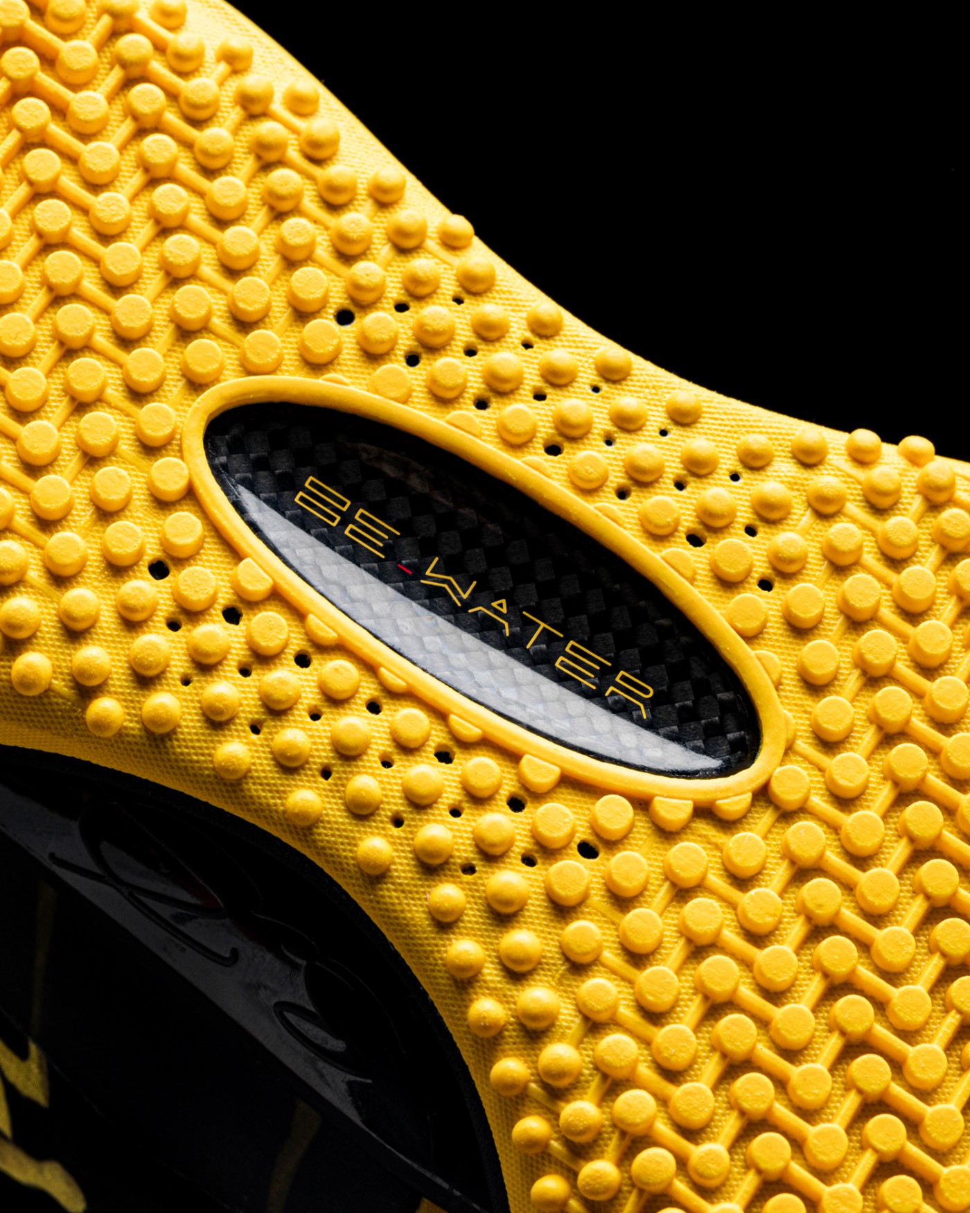 右脚鞋底碳板印有「BE WATER」字样,致敬李小龙的哲学名言。
