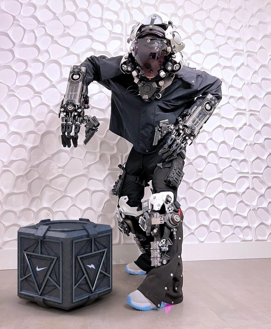 原型鞋仿佛给经典的 Dunk 穿上了一层「盔甲」,看起来颇有「赛博朋克」的未来风格。