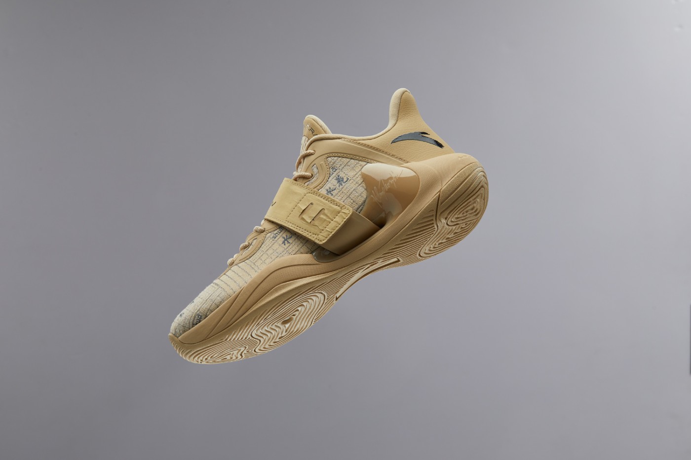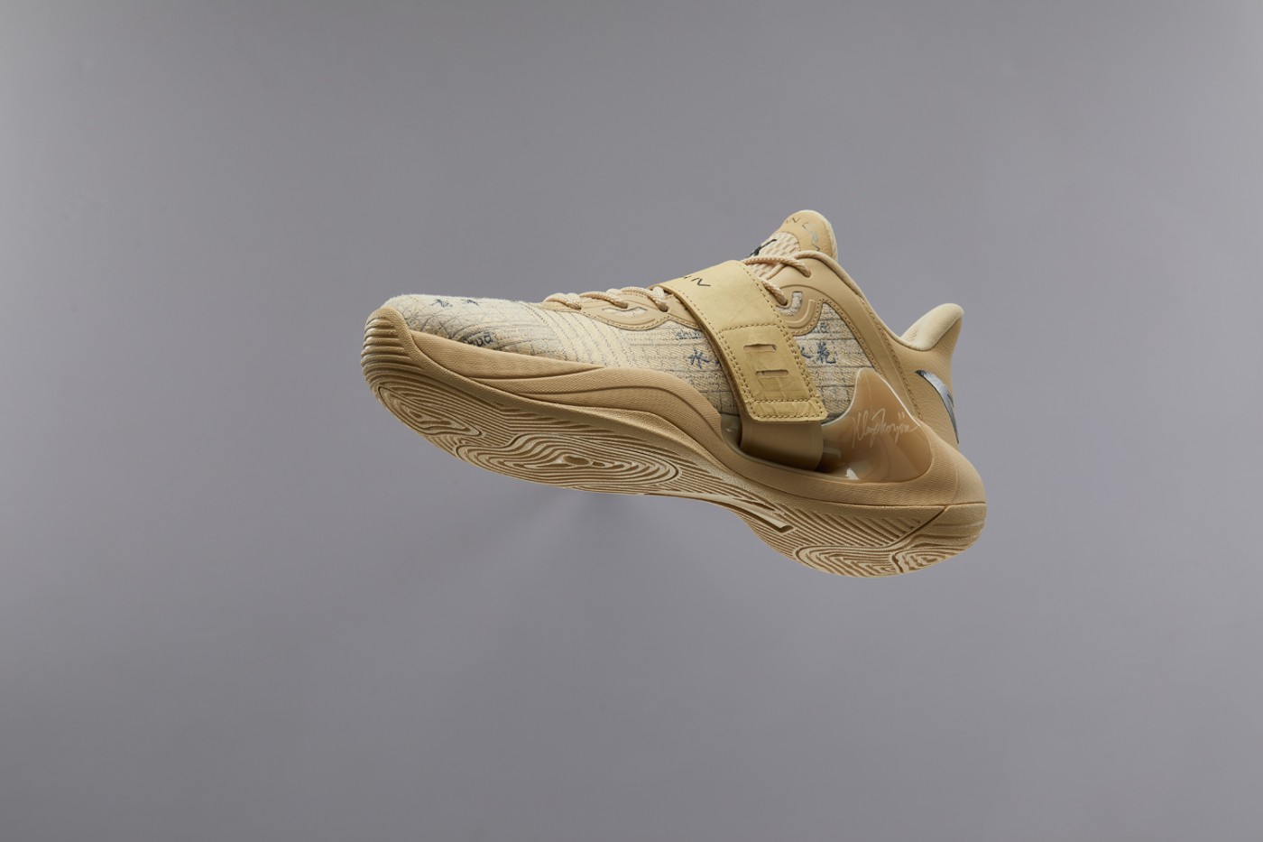 鞋面的绑带系统颇为特别,不仅延续了可拆卸的设计,并且以杜邦纸材料覆盖,呼应宣纸和书法主题。