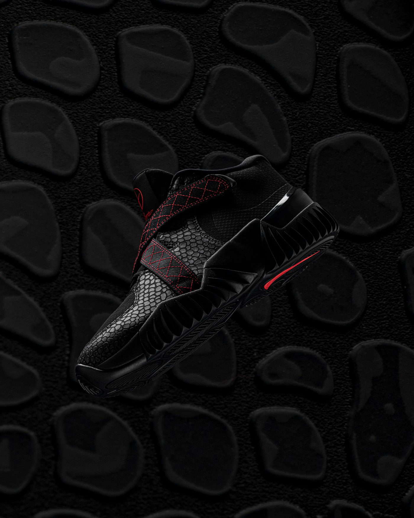 除了鞋面的龙鳞,另一处体现「龙」元素的便是中底上的 “龙牙” 状防侧翻系统,整齐排布在中底外侧。