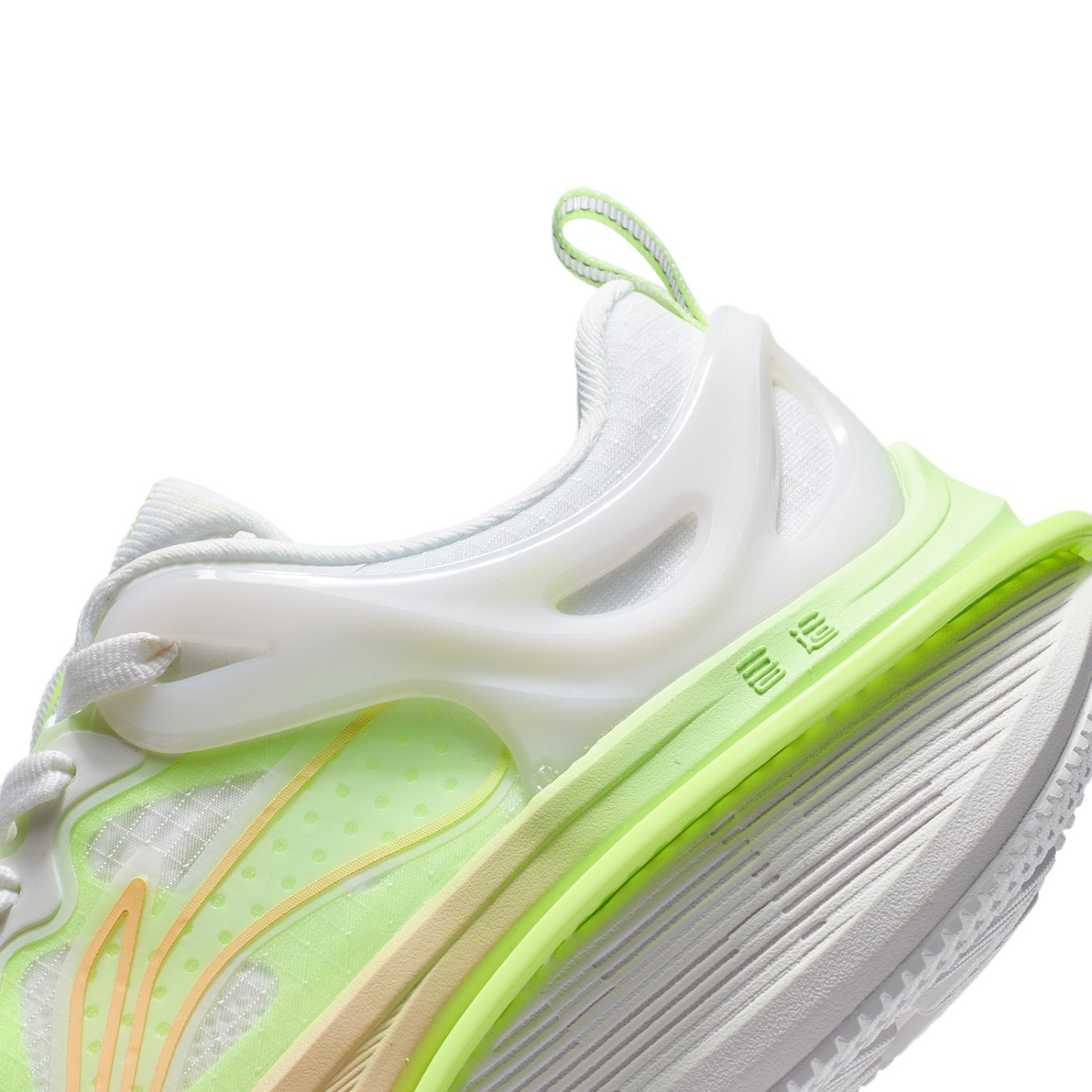 鞋面采用 Mono 纱搭配内层网眼设计,保证轻薄透气,后跟的 TPU 包裹系统,延续该系列强调支撑保护的特点。