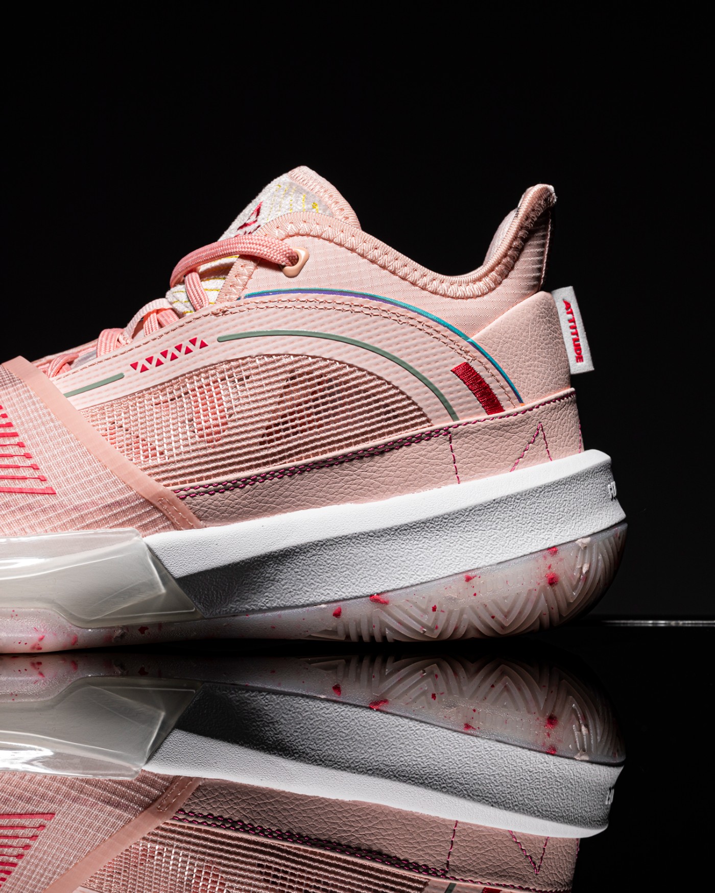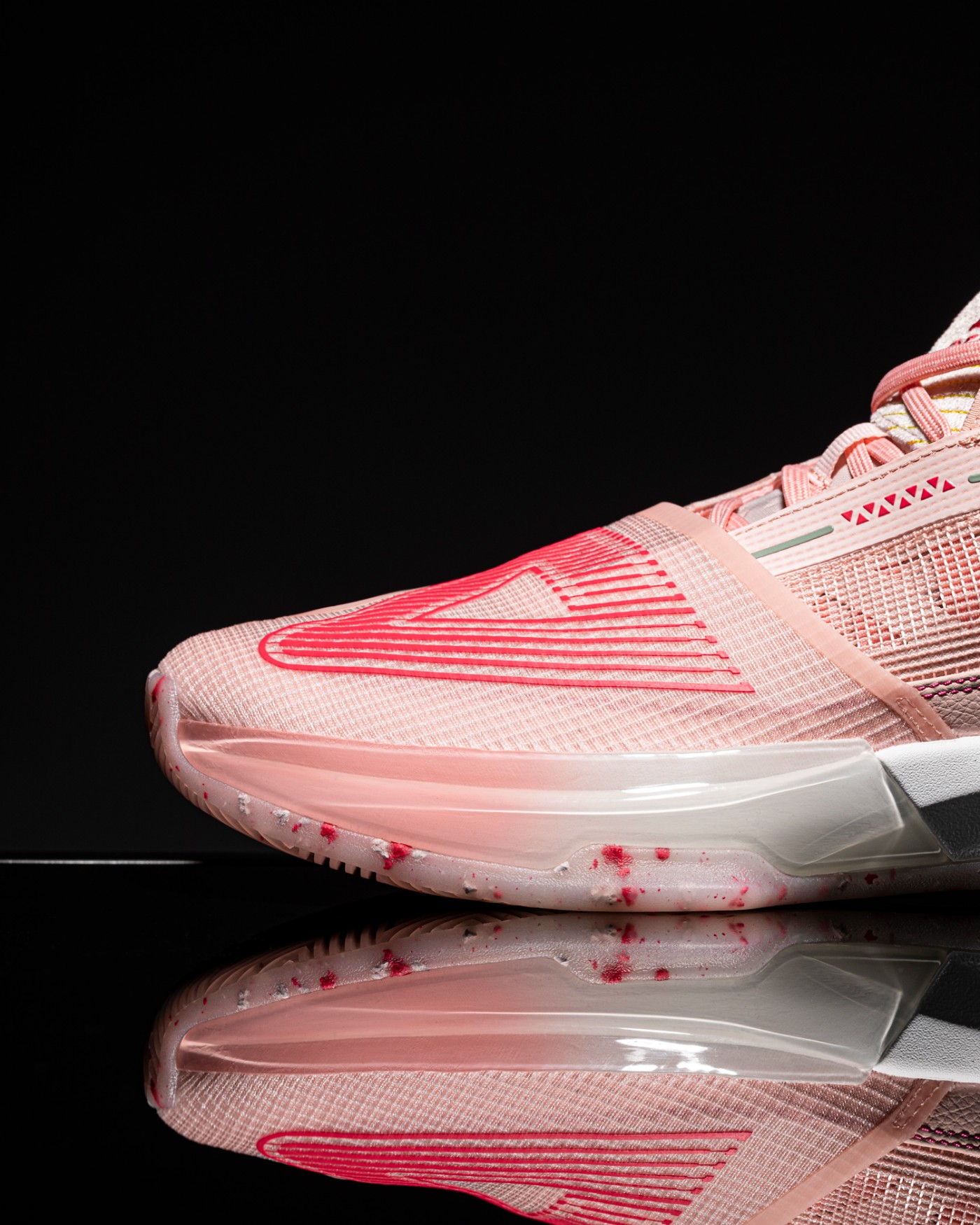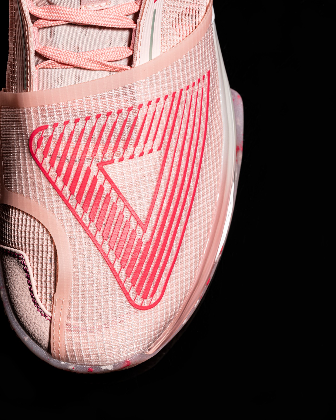 初次拿到这双鞋,小编就被这粉嫩的配色吸引住,颜色调配的恰到好处,既不会过于特别扎眼又能带来猛男追求的甜美氛围,在夏季的球场上脚这样一双球鞋足够成为场上焦点。