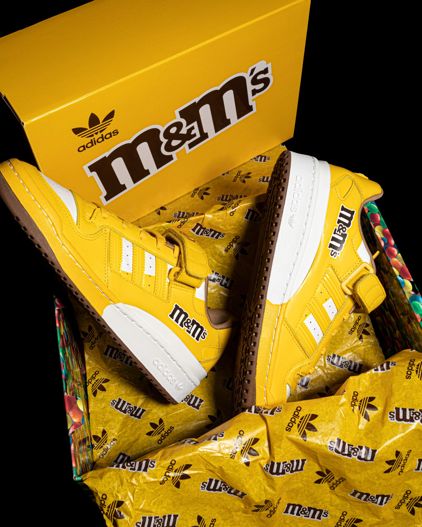 此前,M&M’s 就和 adidas Orionals 合作带来了一双联名 Forum 84 鞋款。