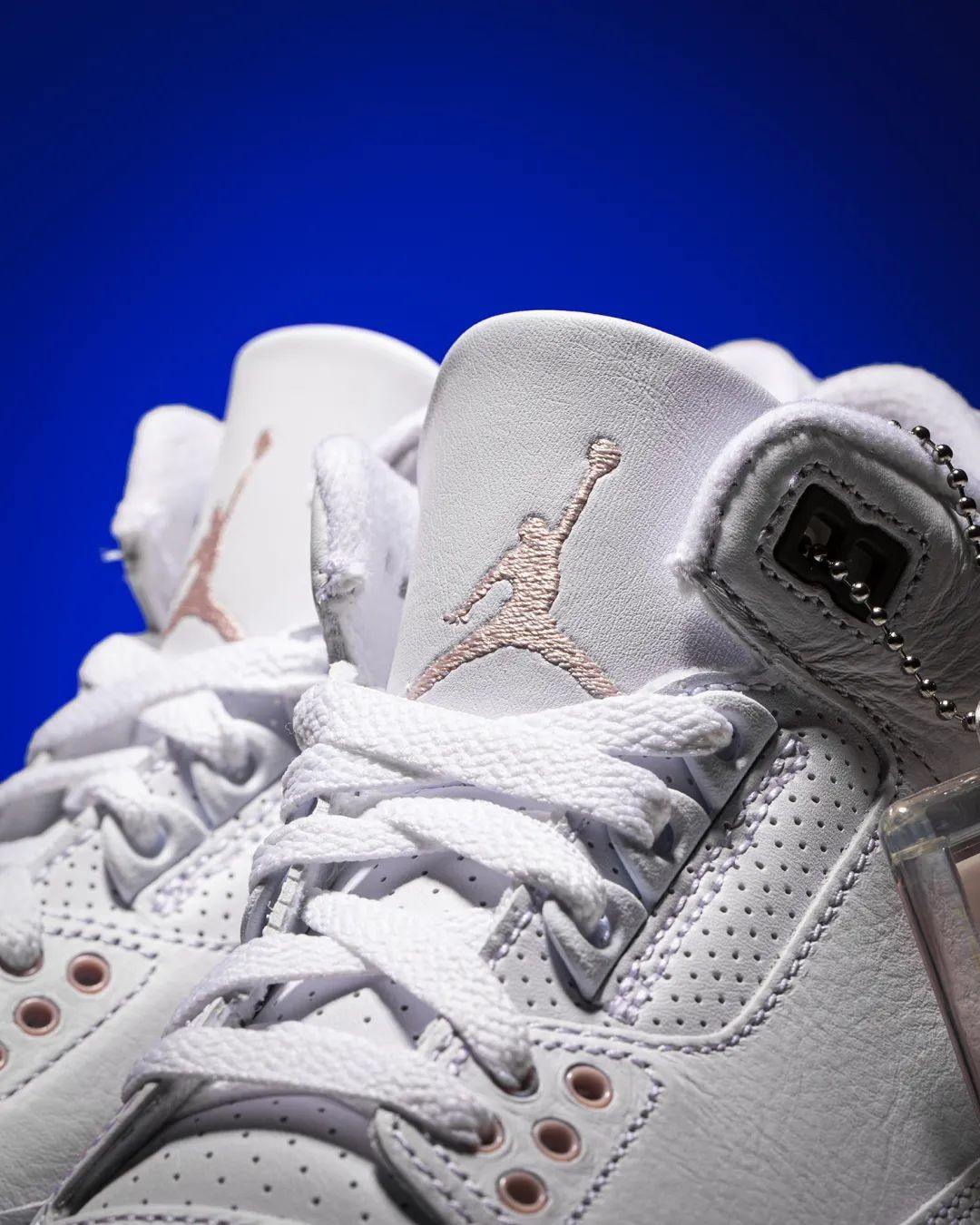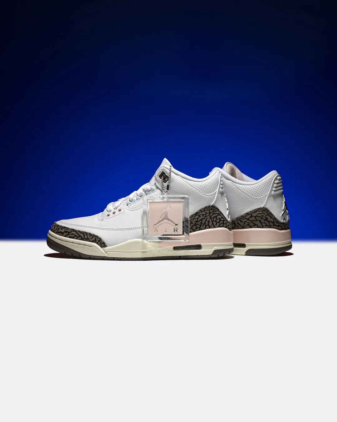鞋面以白色皮革材质覆盖,鞋头、后跟标志性爆裂纹得以保留,并以摩卡棕色呈现,延续 AJ3 一如既往的高级质感。