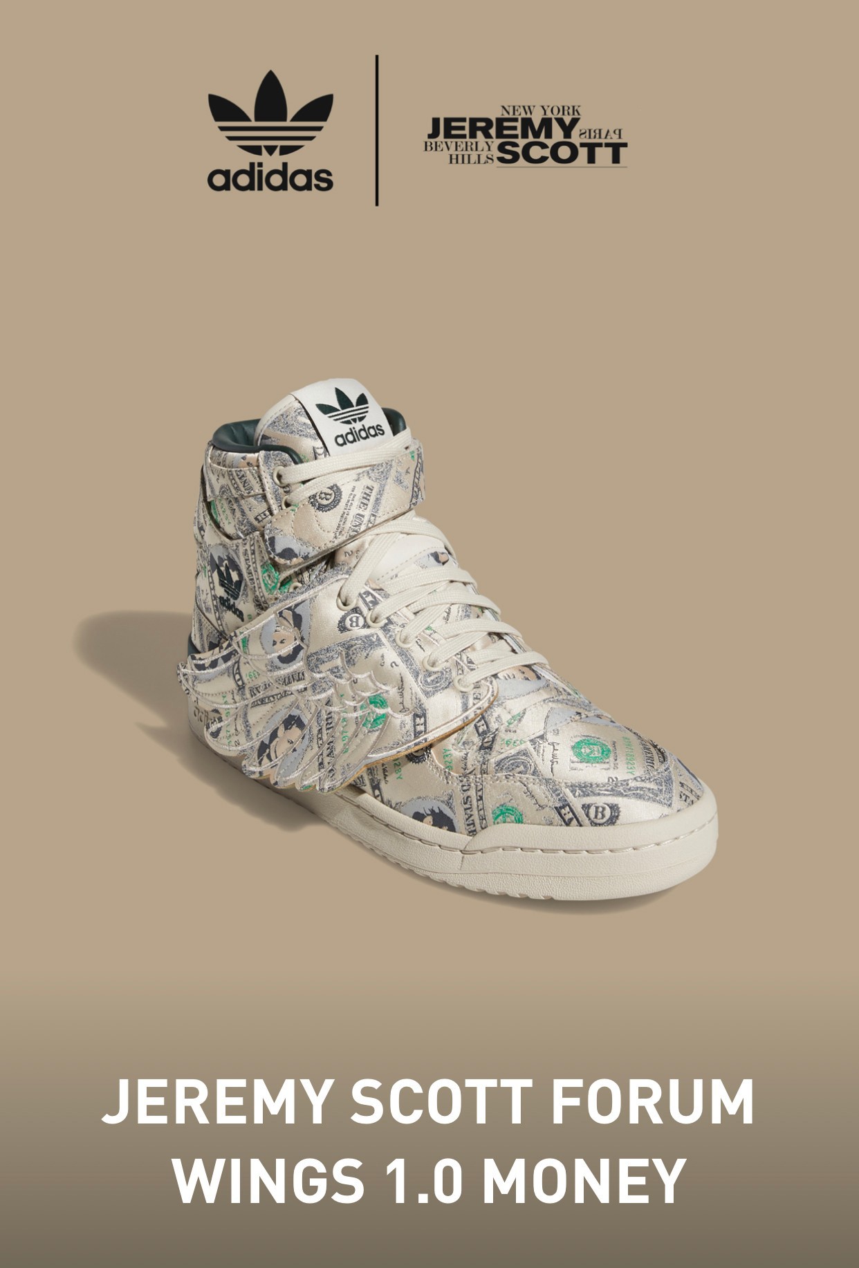 去年 6 月双方再度携手,带来的「美金大翅膀」也标志着 adidas x Jeremy Scott Forum Wings 系列正式回归。