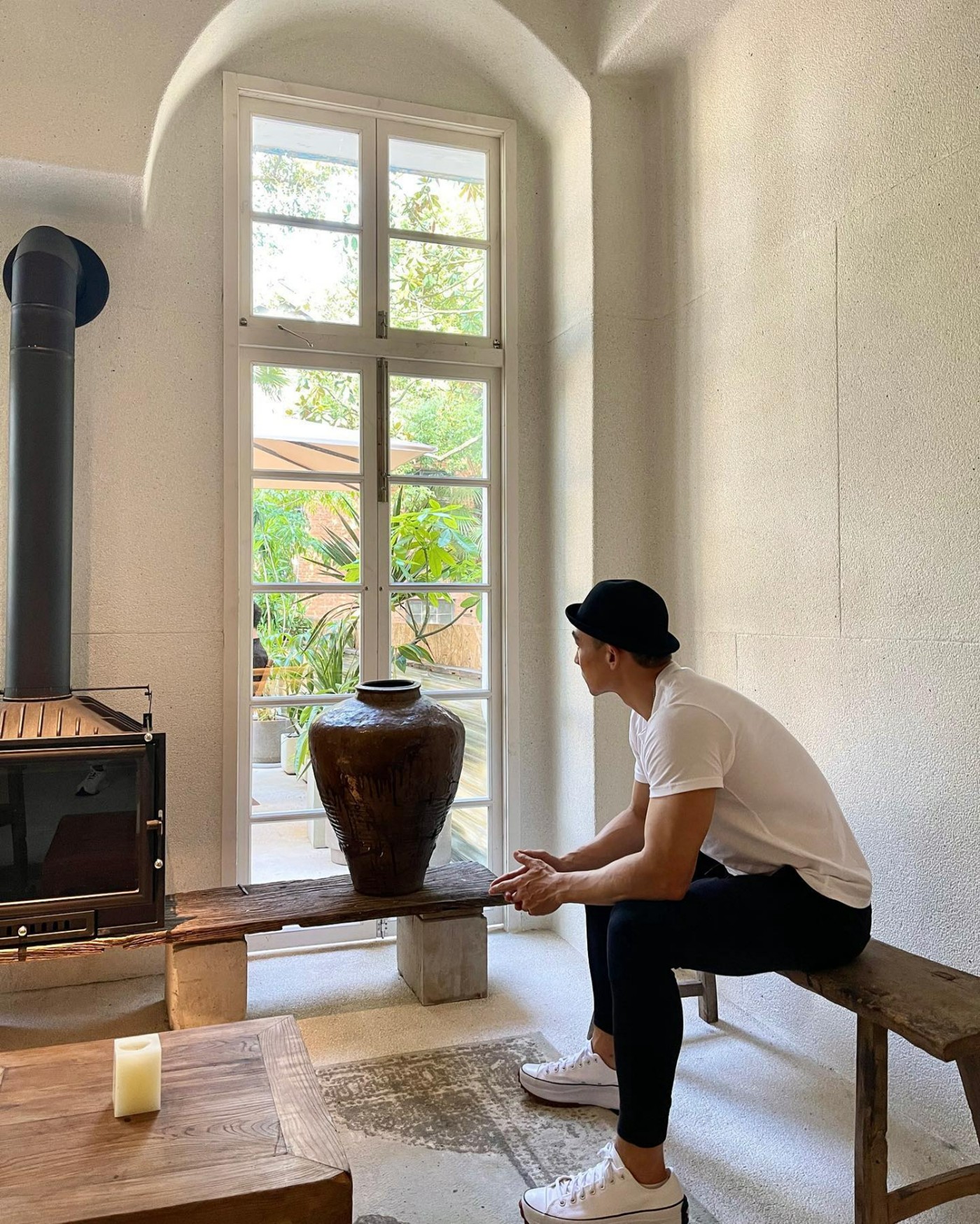 作为健身狂魔的他,偶尔也会有文静的一面,自然也要变换一下风格,一双 Converse Run Star Hike 是再合适不过的选择。