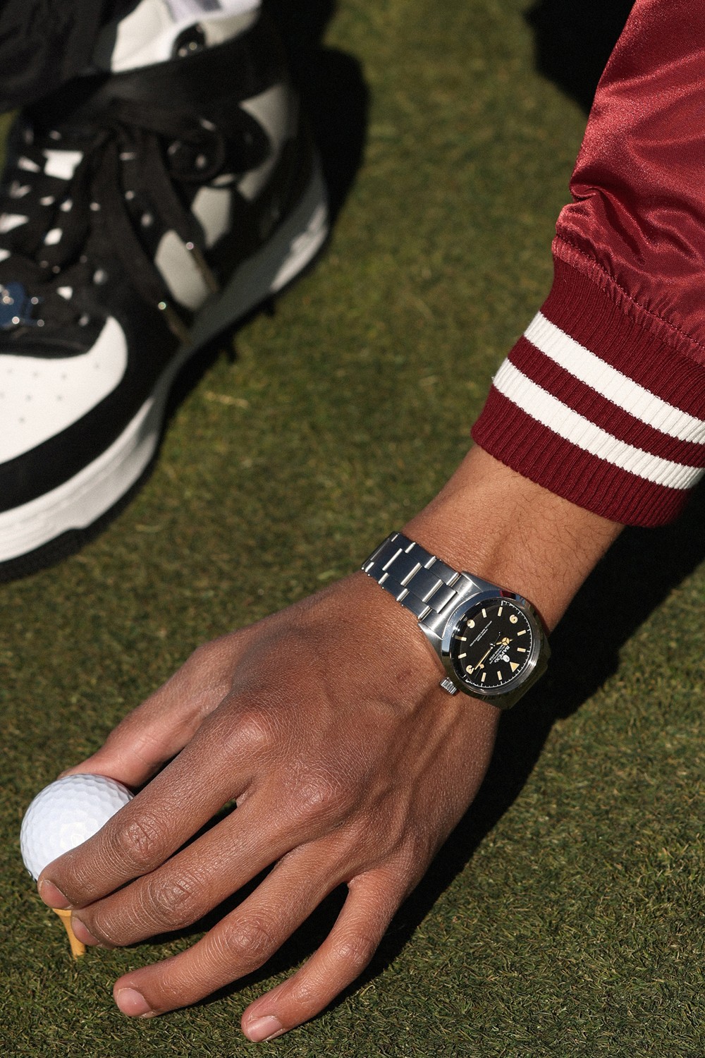 黑色表盘是坚硬的玻璃纤维材质,整体黑银撞色的造型,辨识度依旧经典瞩目。