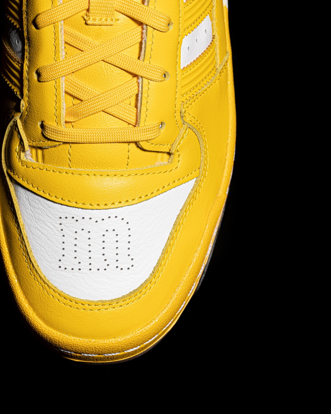 鞋面以白色皮革框架搭建,在后跟、鞋带孔、鞋舌和侧面三条纹处点缀相应色彩,视觉效果十分亮眼。