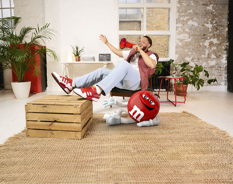 鞋舌 Tag 换用了橡胶材料,并保留了特殊形状的镂空,灵感来源于 M&M’s 巧克力包装上的开孔,仿佛马上就要挂上货架一样。
