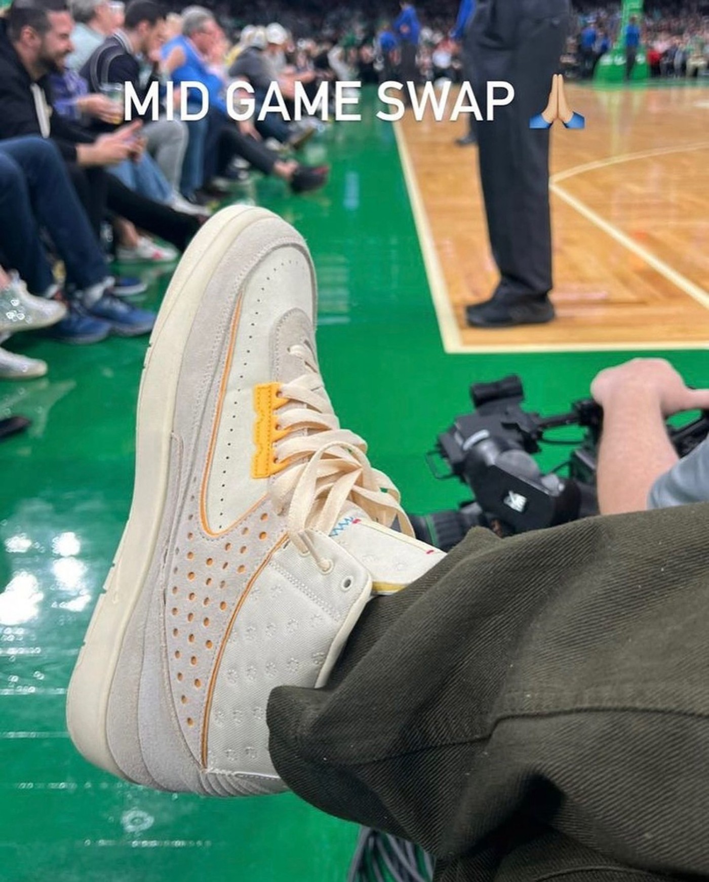 好在他还有备用鞋款,换上一双 Union x Air Jordan 2,也算是缓解了这小小的尴尬。