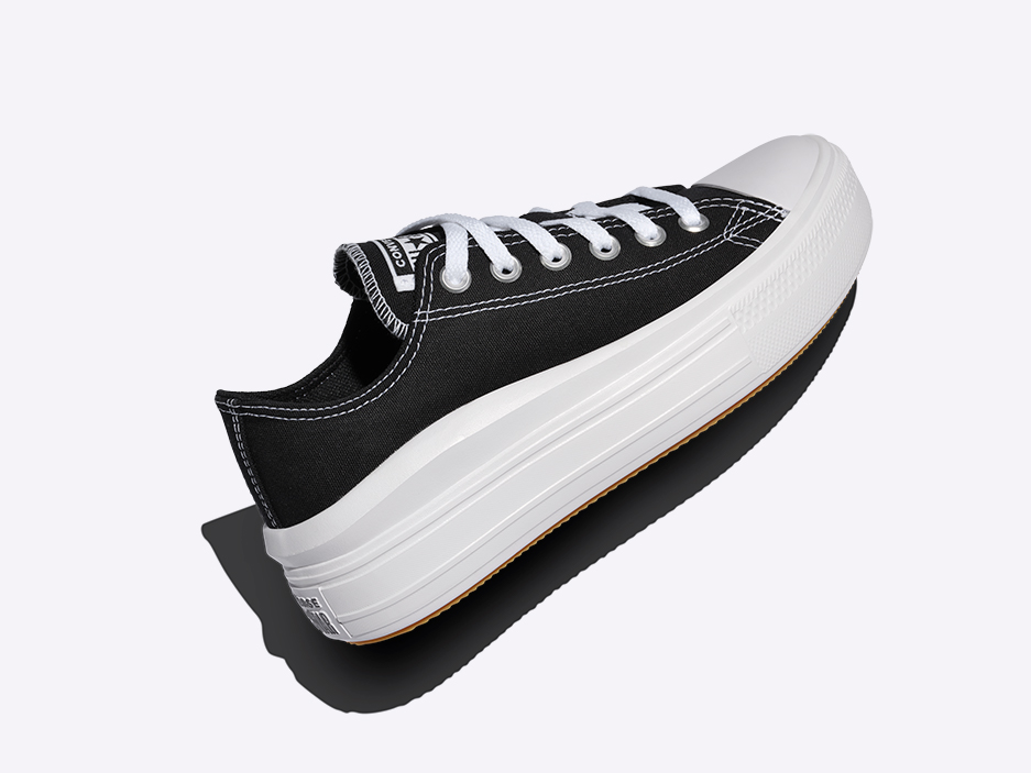 第三款 CHUCK TAYLOR ALL STAR MOVE 云朵厚底鞋取消了前两款上亮眼的锯齿形外底。