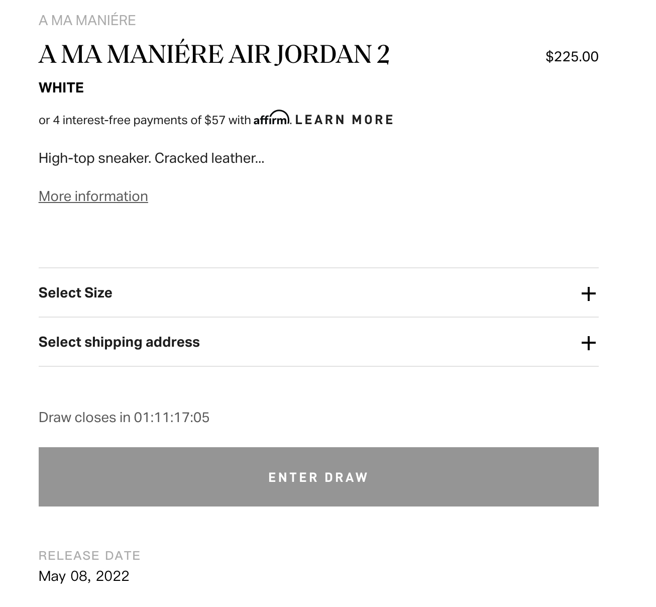 随后 A Ma Maniére 官方宣布了此次联名 Air Jordan 2 的正式发售将延期,目前仍然可以在 A Ma Maniére 官网看到登记信息。