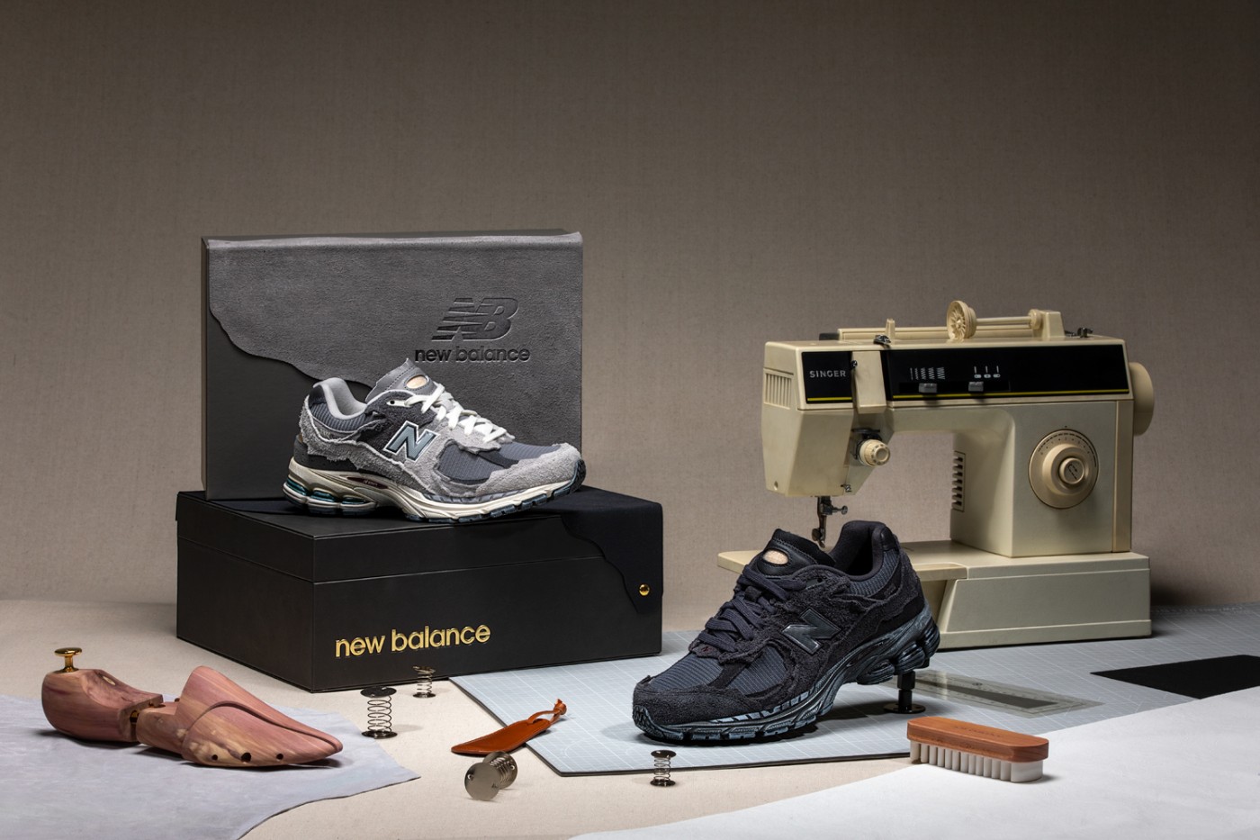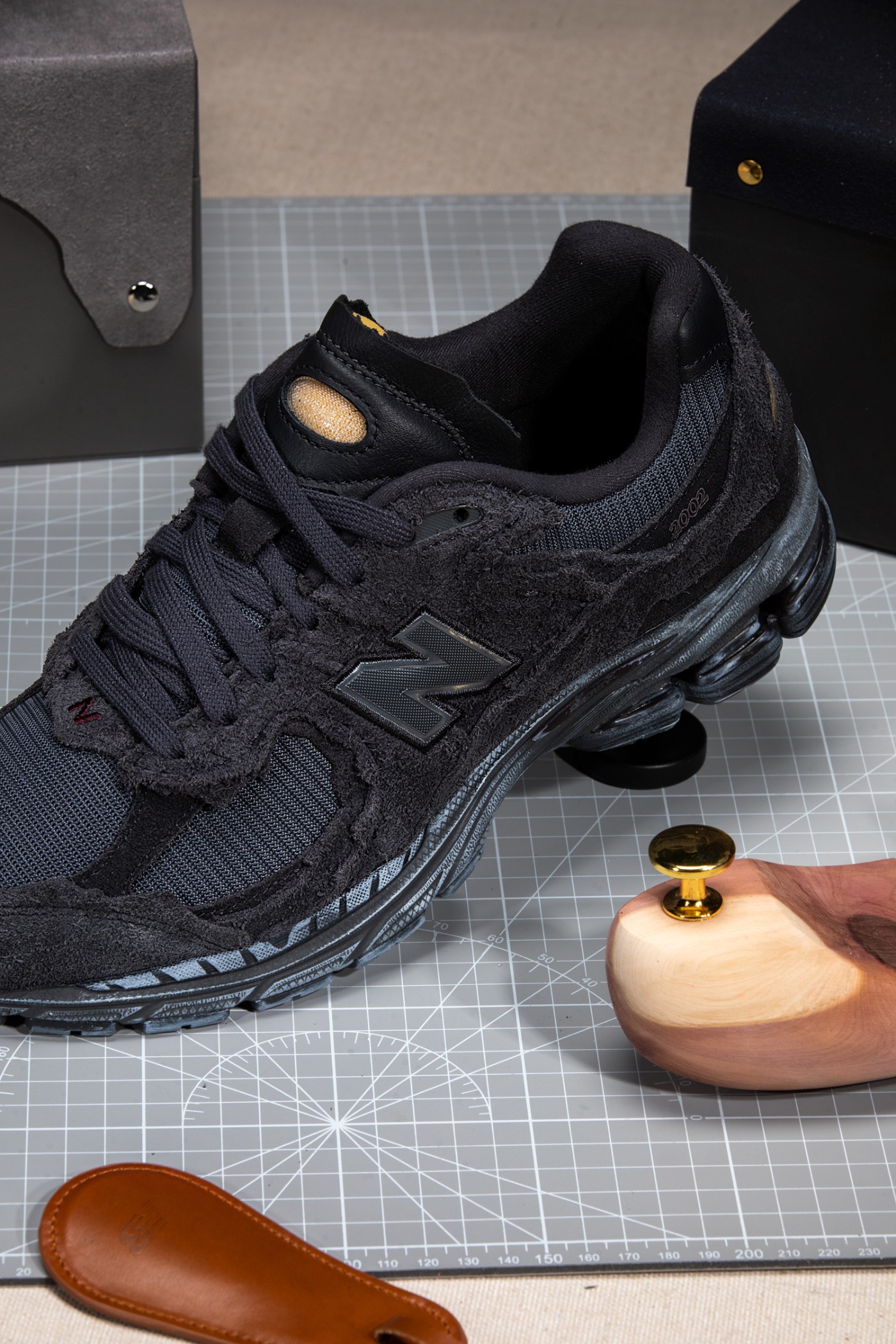 Distressed Pack 每款均以极具质感的麂皮材质打造,搭配不规则的剪裁拼接,带来比常规 2002R 更丰富的层次。