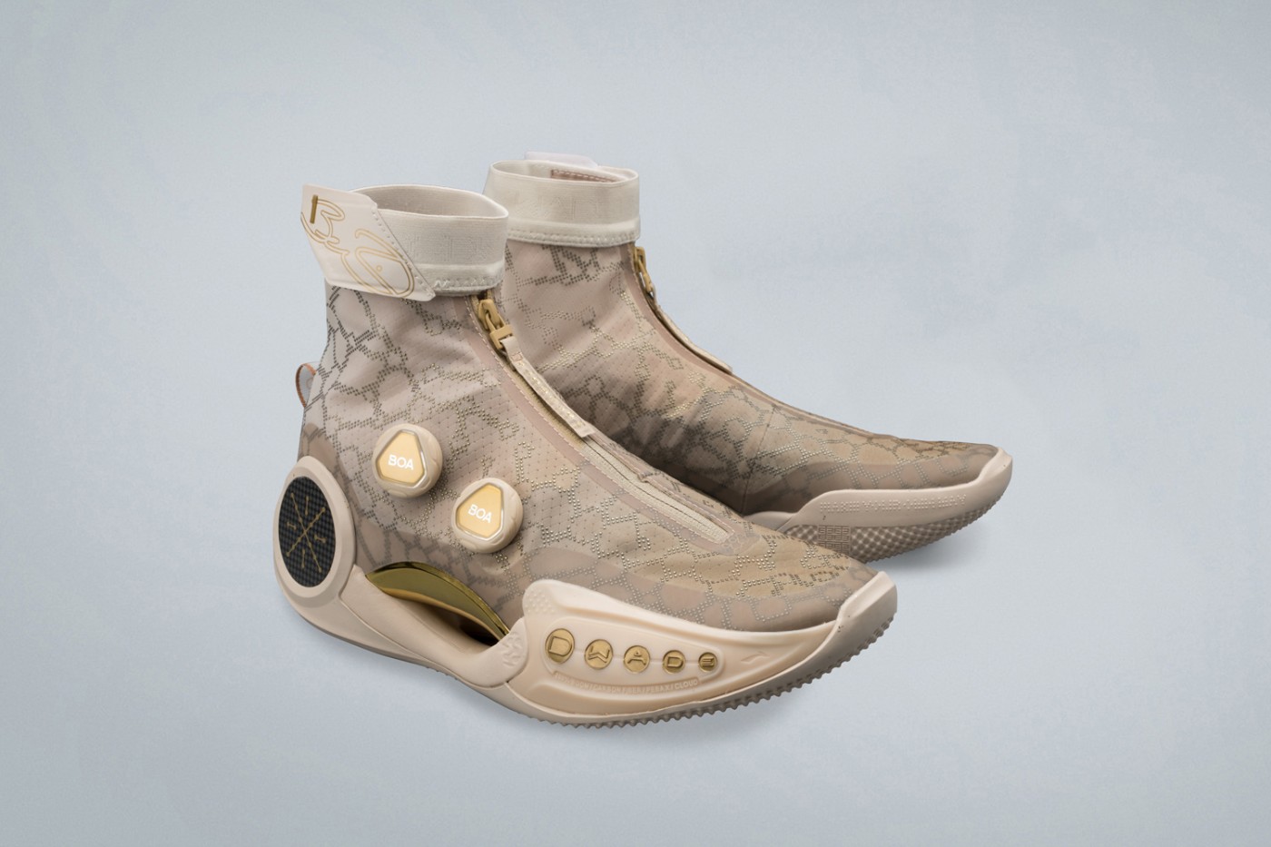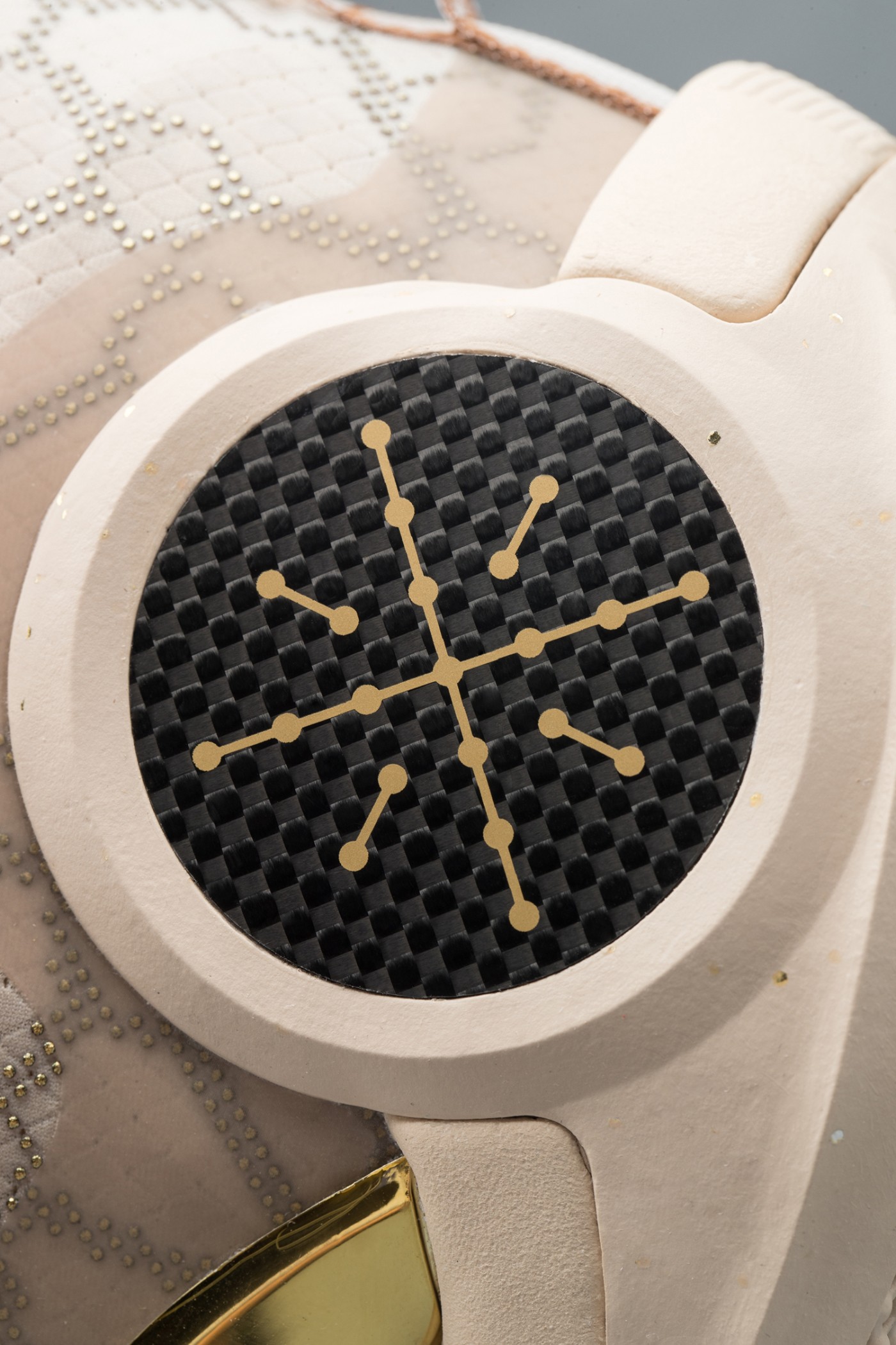 鞋身整体以香槟金色呈现,致敬韦德2012-13赛季夺冠后用香槟浇膝盖的经典时刻。