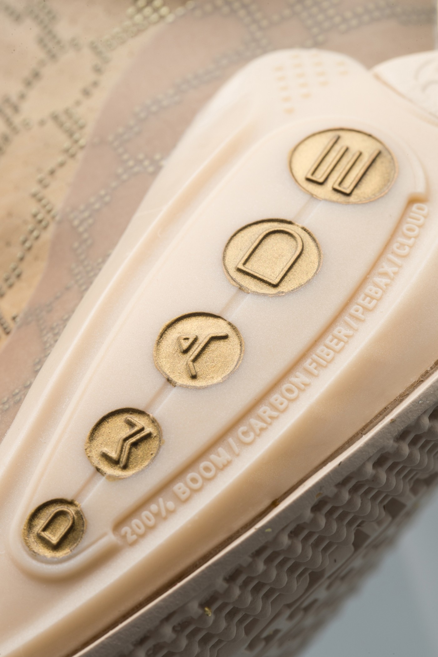 鞋身多处部件细节也都以金色装扮,其中金色电镀的中底 PEBAX 最为耀眼夺目。