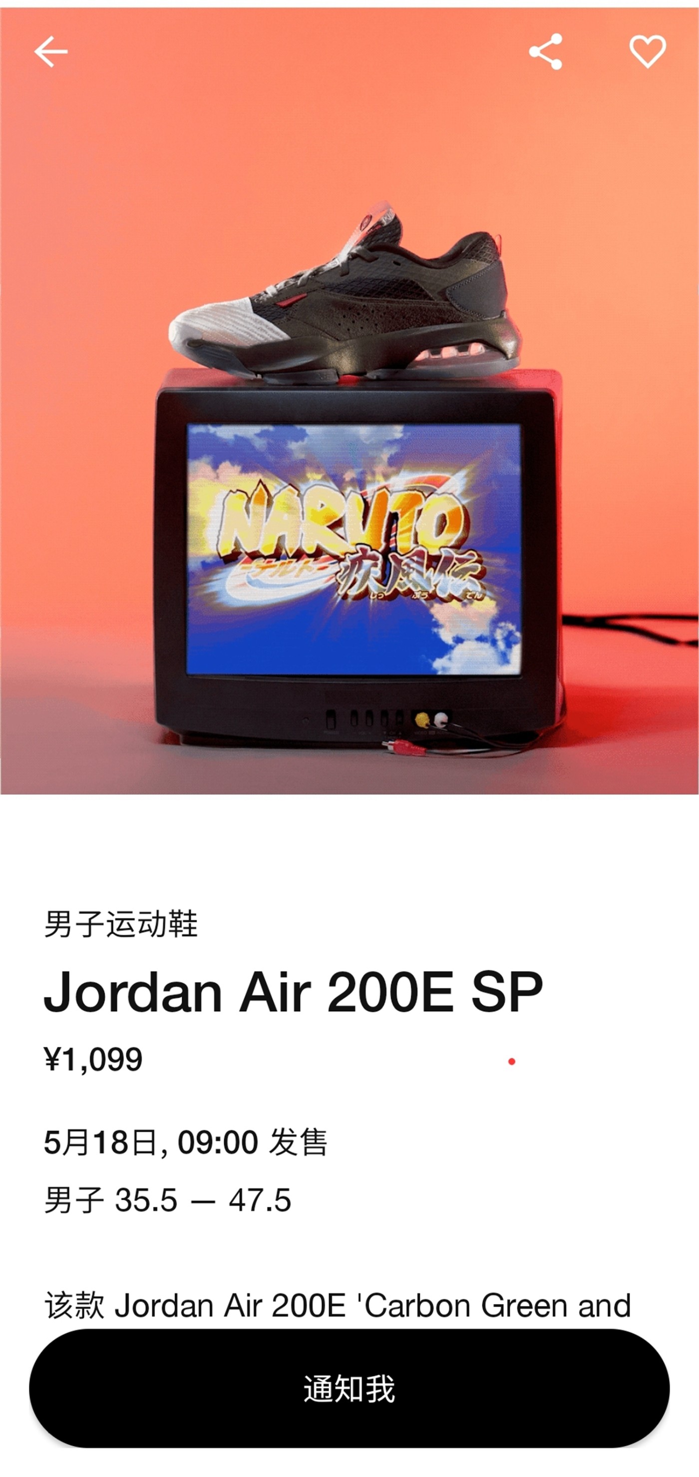 近日,Jordan Brand x 《火影忍者(Naruto)》正式上架 SNKRS APP!