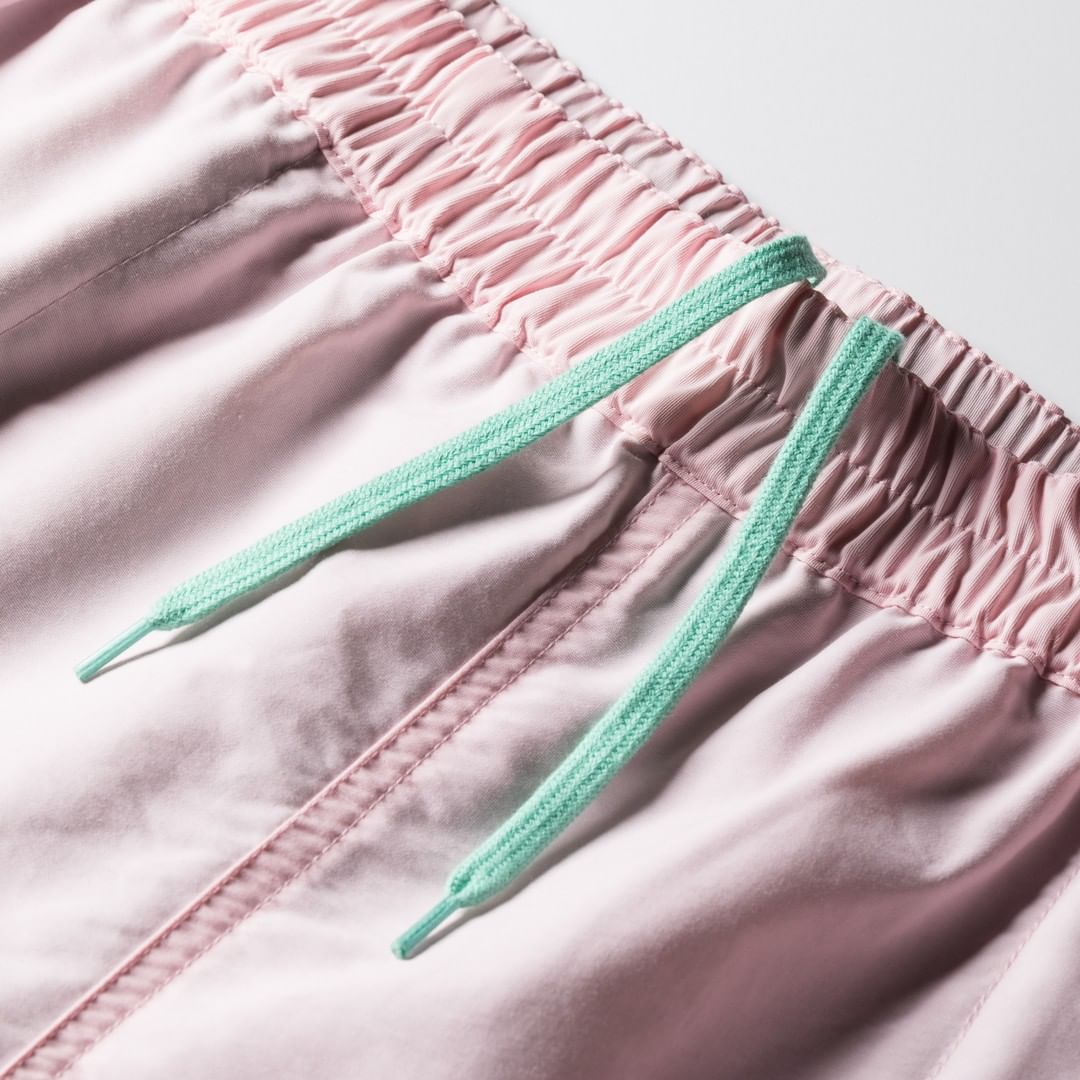 粉色款搭配青色尼龙抽绳,颇有一种「南海岸」的味道。