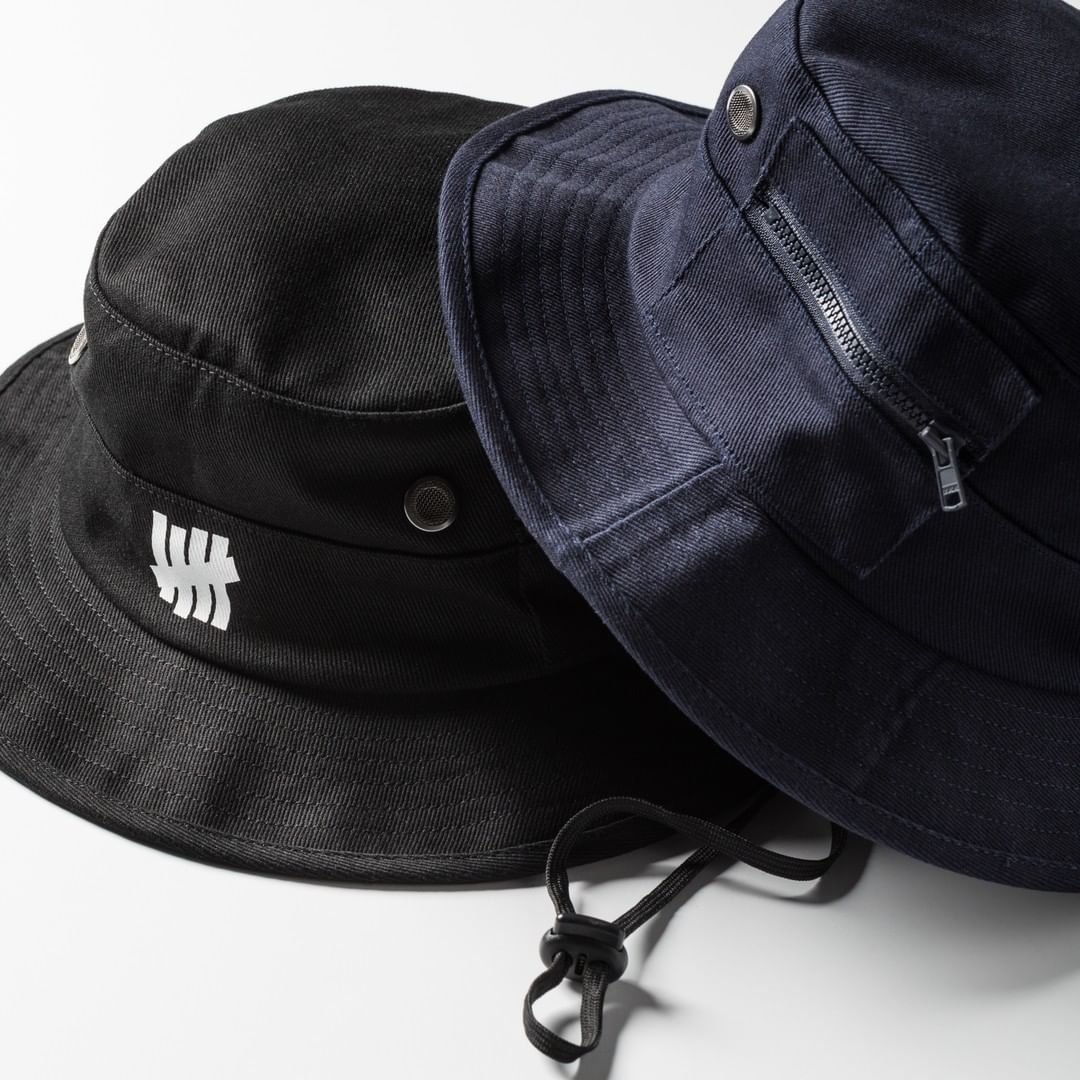 帽款方面,同样斜纹面料的渔夫帽也以海军蓝和黑色一同登场,不仅有便捷的可调节抽绳,还加入了迷你拉链口袋,实用性进一步提升。