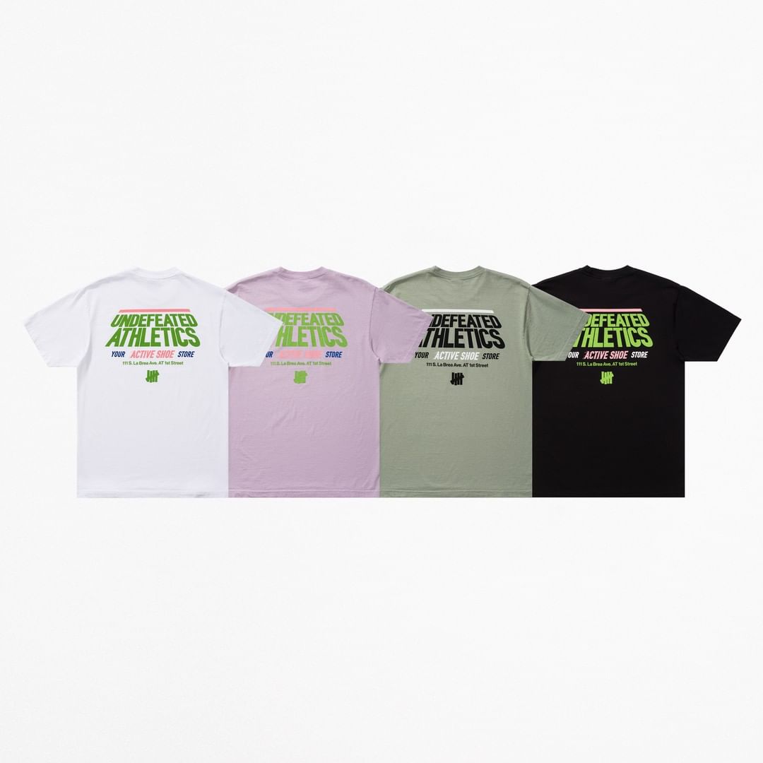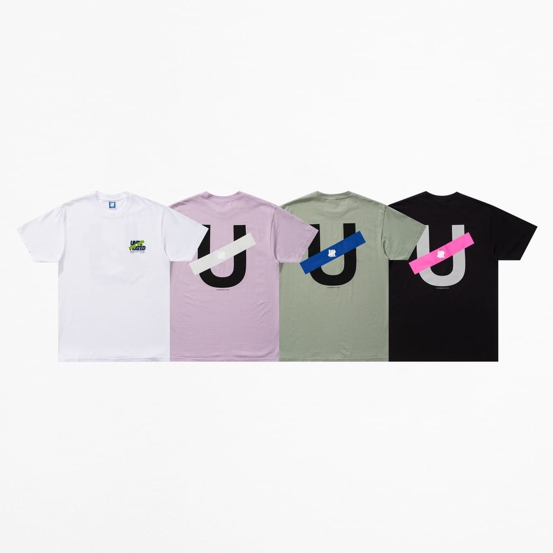 短袖 T 恤的图案提供了丰富选择,例如 UNDEFEATED 品牌小徽标、大号首字母 U、洗涤说明、UNDEFEATED 鞋店等元素,新鲜感十足。