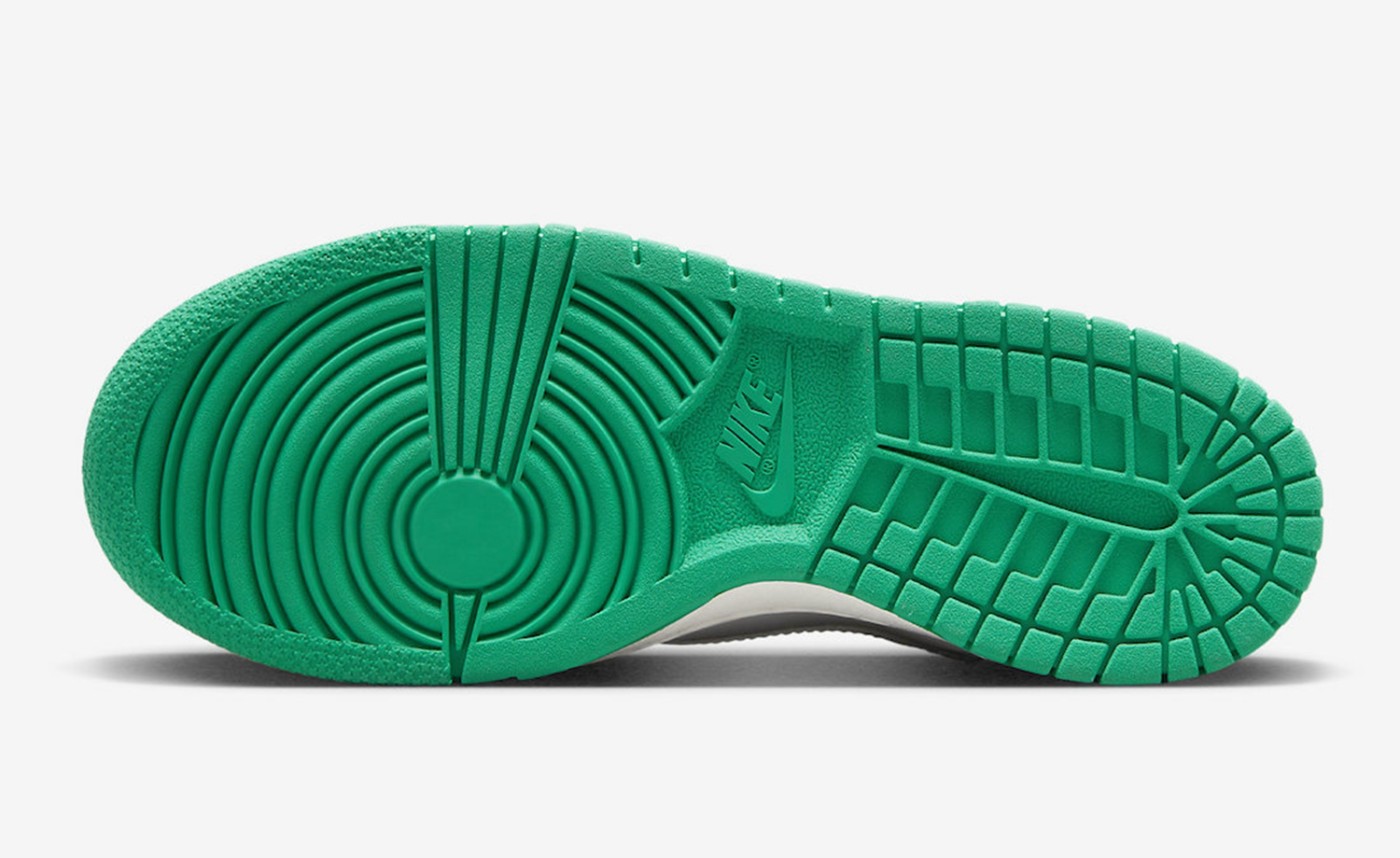 中底和外底分别使用乳白色和绿色,呼应鞋面配色,完善整鞋设计。