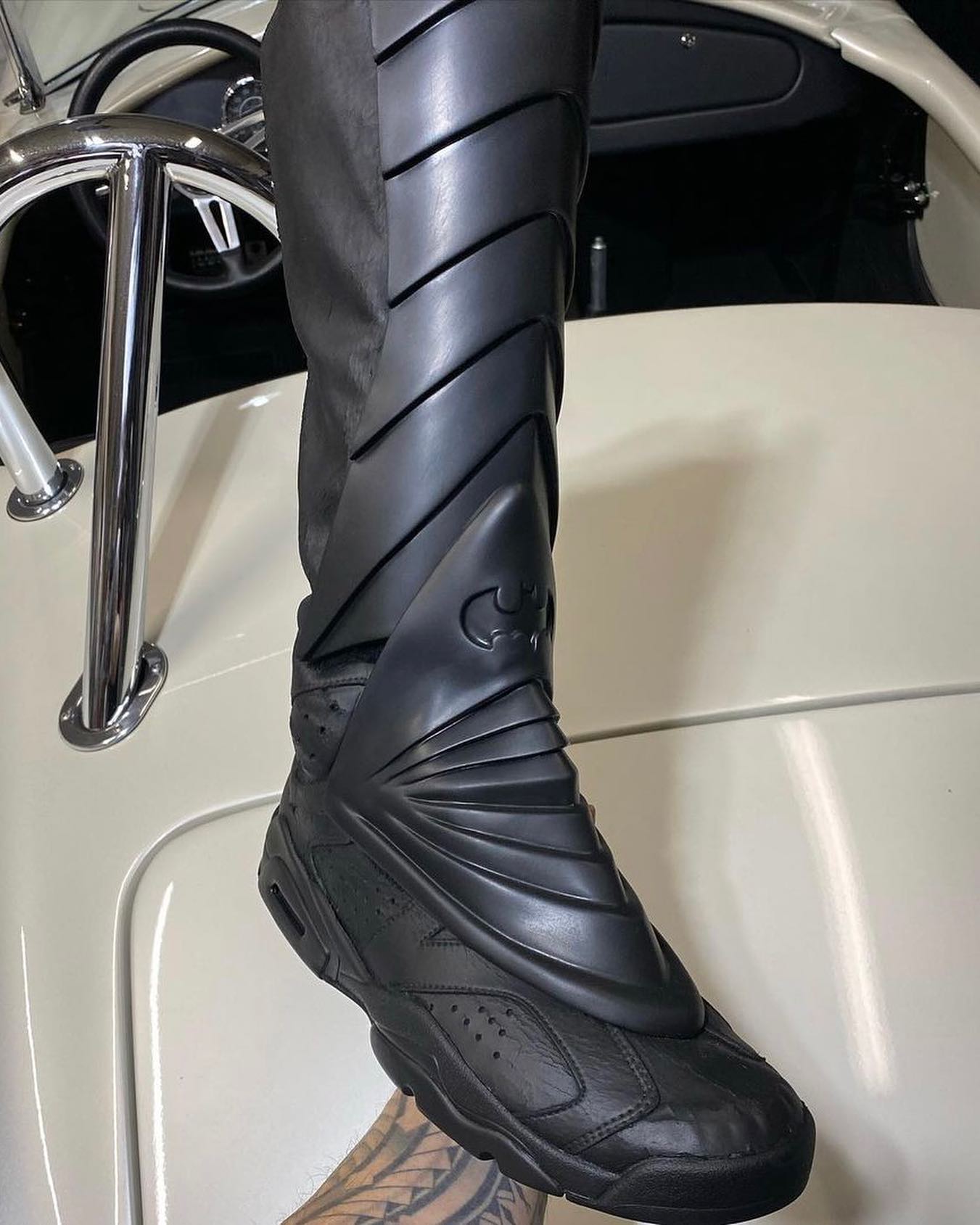 1992 为拍摄《蝙蝠侠归来》,特别以当时正流行的 Air Jordan 6 为蓝本,打造了一双道具蝙蝠鞋。