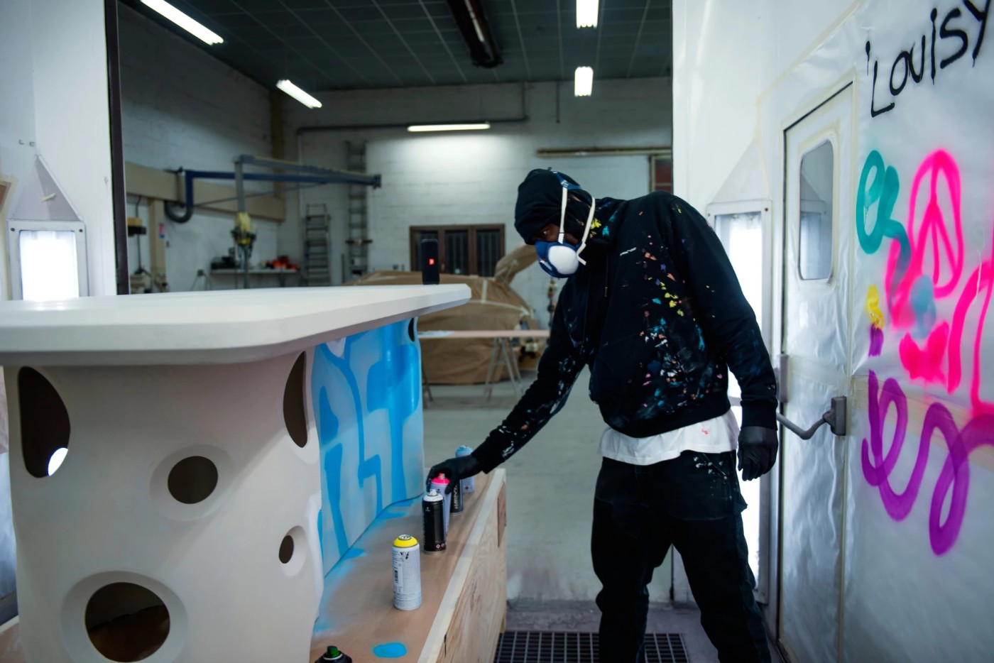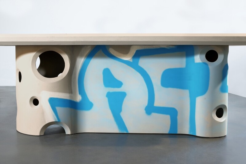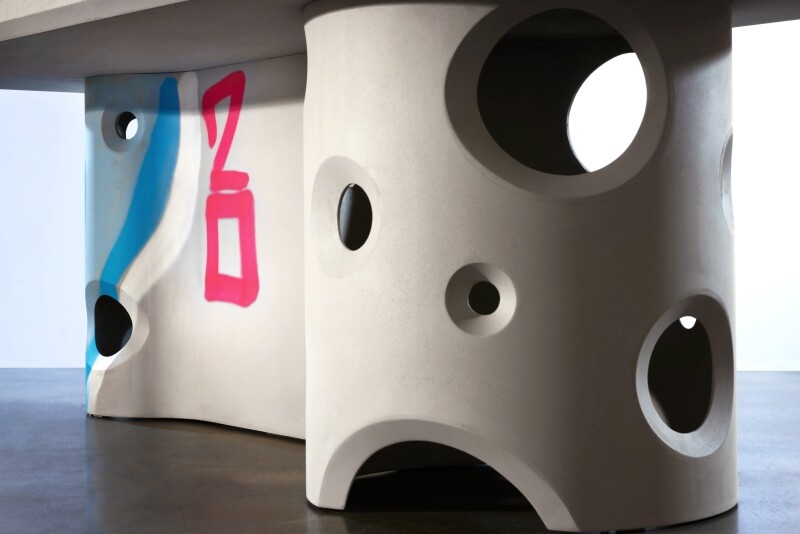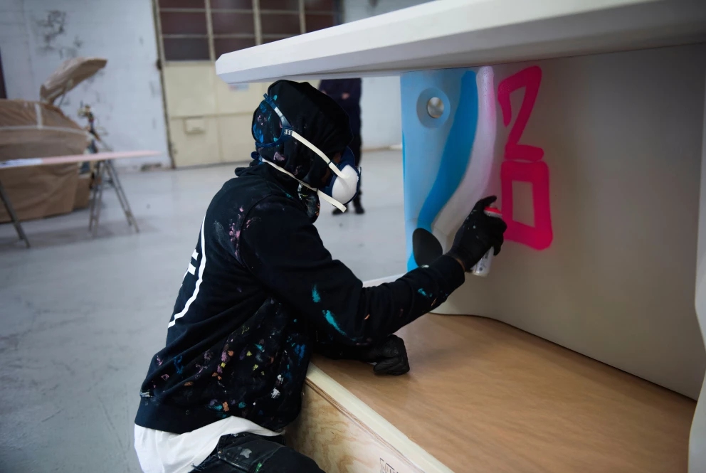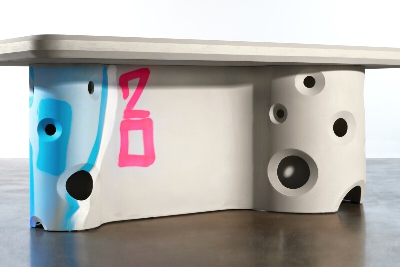 在冰冷工业风的造型上,加入了横穿“桌腿”主体的「ACID 20」手绘涂鸦,为整张桌子注入了活力和街头风格。