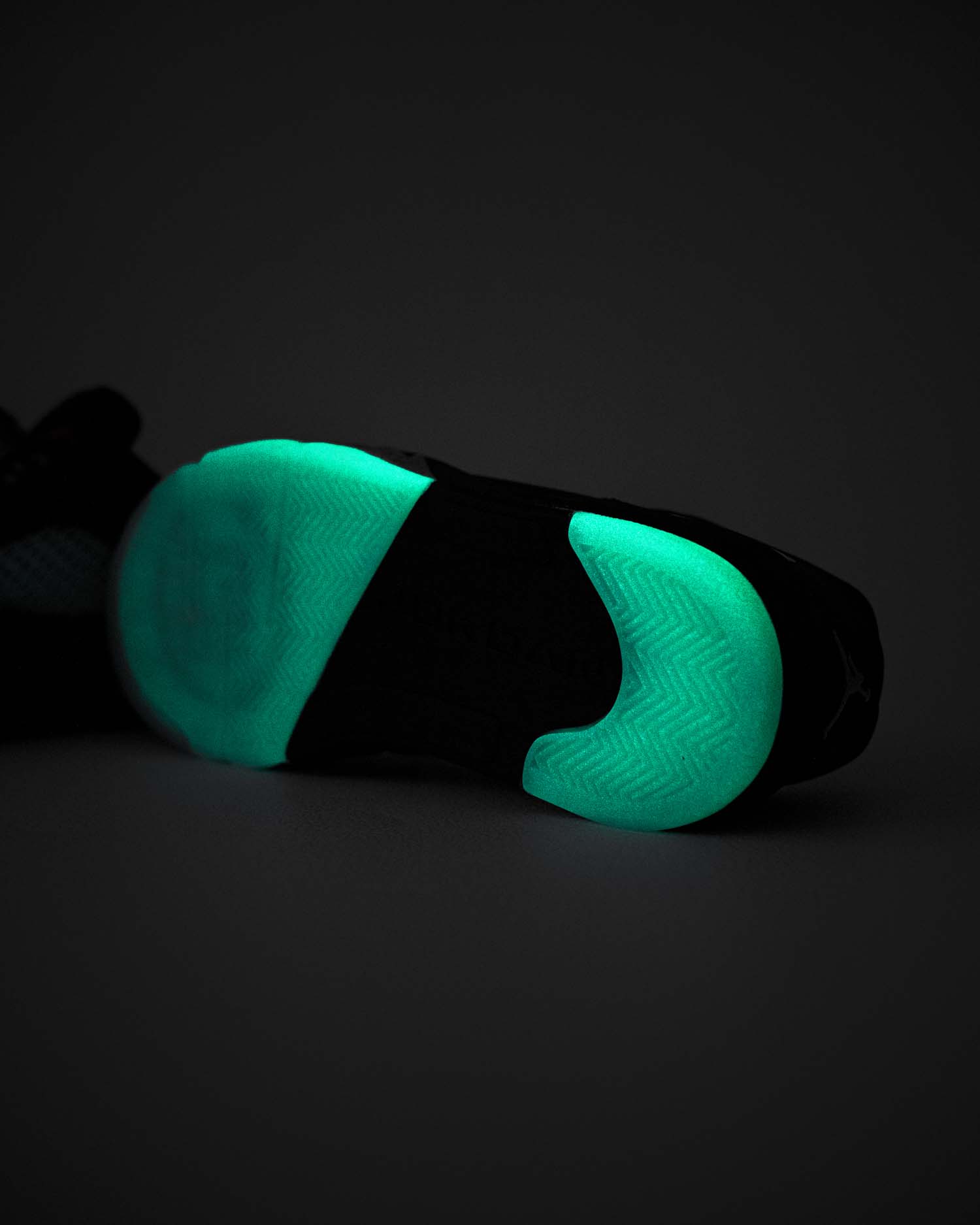 在黑暗环境下夜光效果尤为明显,这质感远处看起来真的像把玉器贴在鞋底一样。