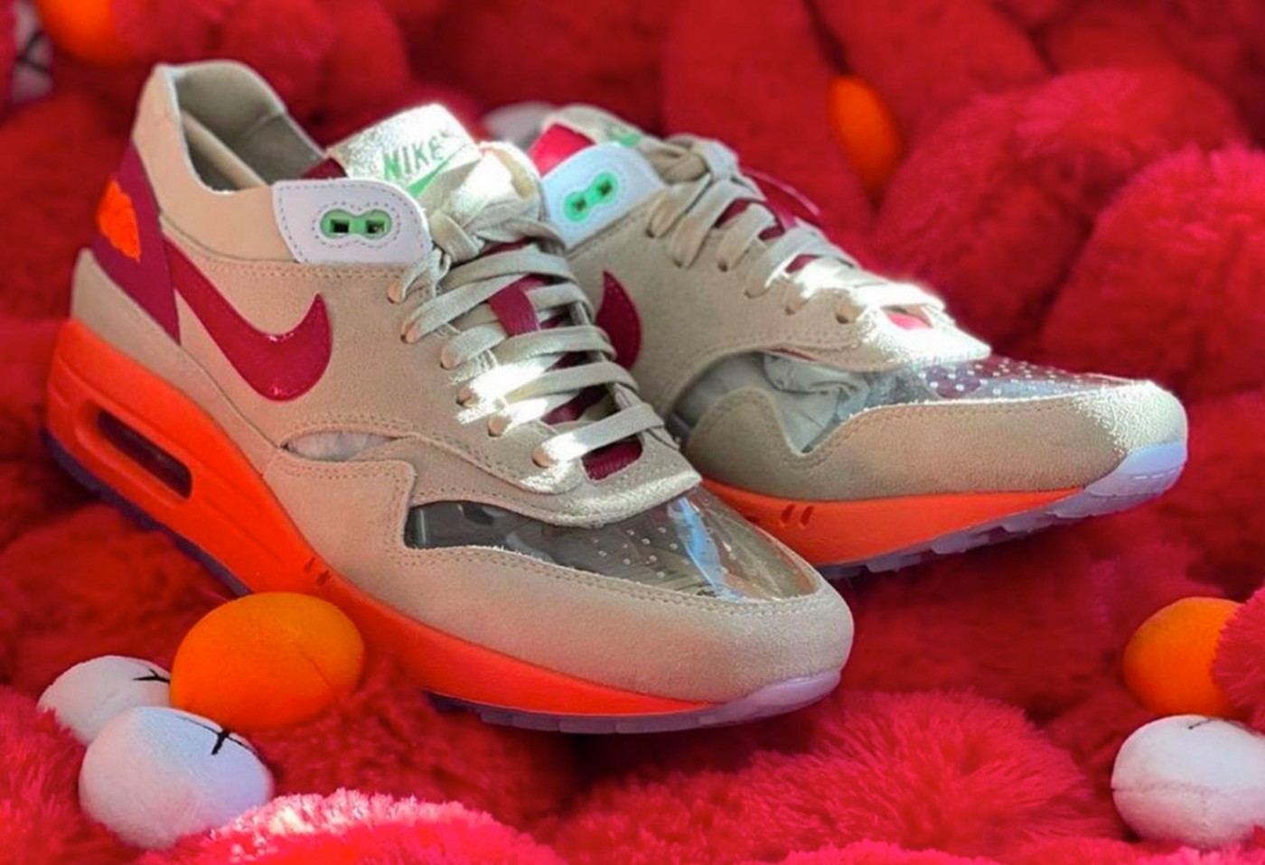 外底方面也是细节拉满,水晶夜光大底呈现出半透明玉石质感,前掌位置透过橡胶隐约看得见硕大的 CLOT Logo。