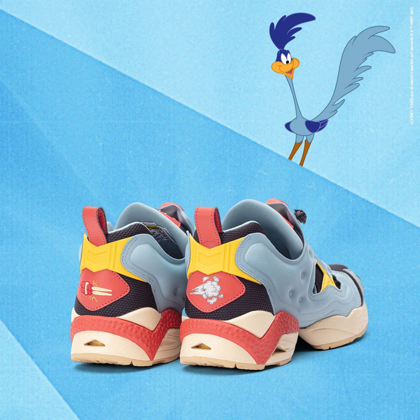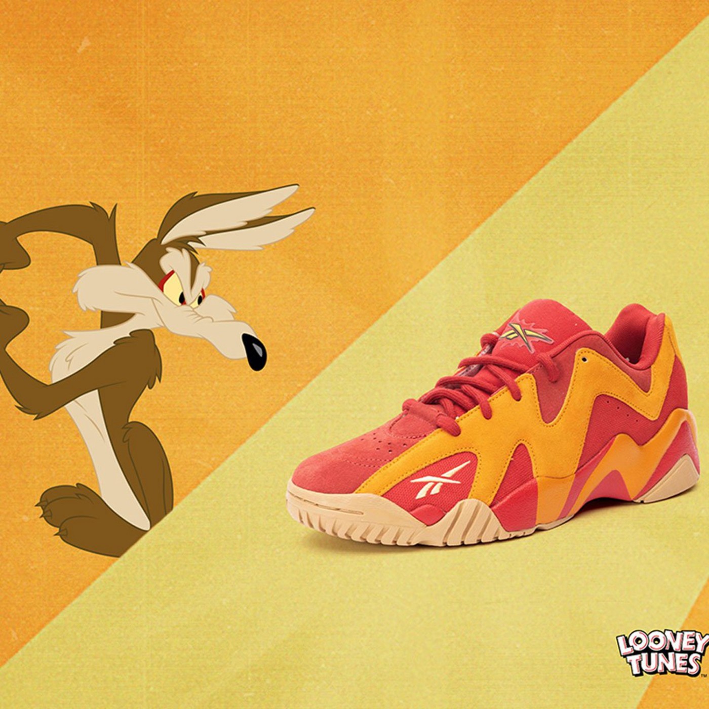 这双 Reebok Hurrikaze 2 Low 的设计则来自于哔哔鸟的 “宿敌” 歪心狼,鞋面仅使用红色和黄色和歪心狼的眼睛颜色一模一样。