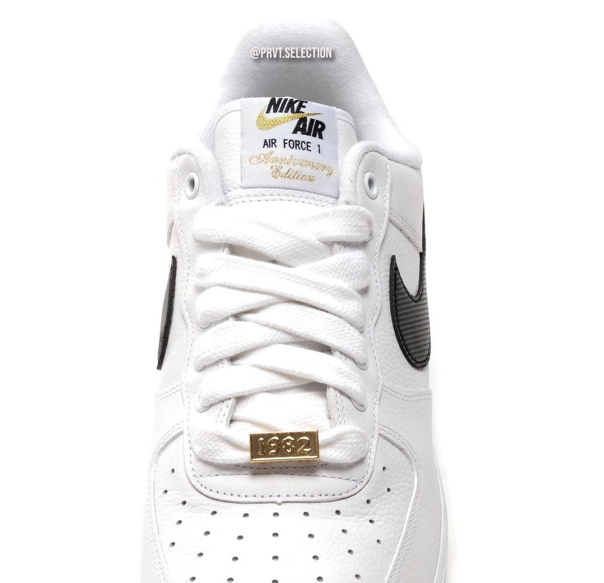 鞋舌织唛上有金色的 Air Force 1 周年版本手写体刺绣,颇为精致,也彰显鞋款特殊身份。
