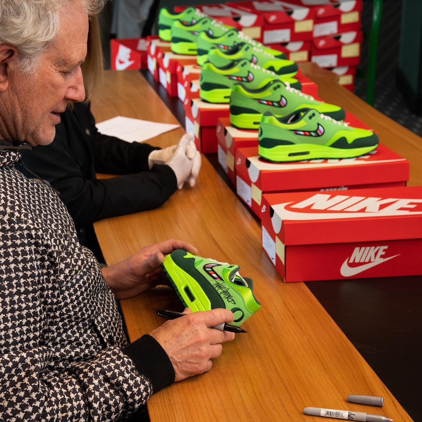 最近亲签了一批 Air Max 1,不是别的,正是今年 2 月曝光的「俄勒冈」Air Max 1!