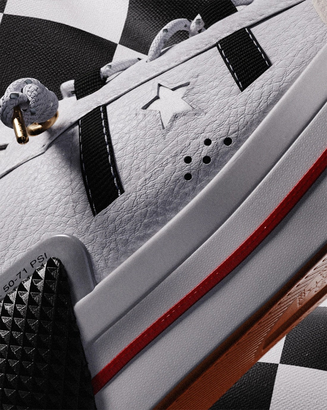 后跟侧面金属质感标牌上的「AUTO CLAVE:50-71 PSI」字样,以及鞋舌上刺绣的赛结旗,更是将赛车元素体现得淋漓尽致。