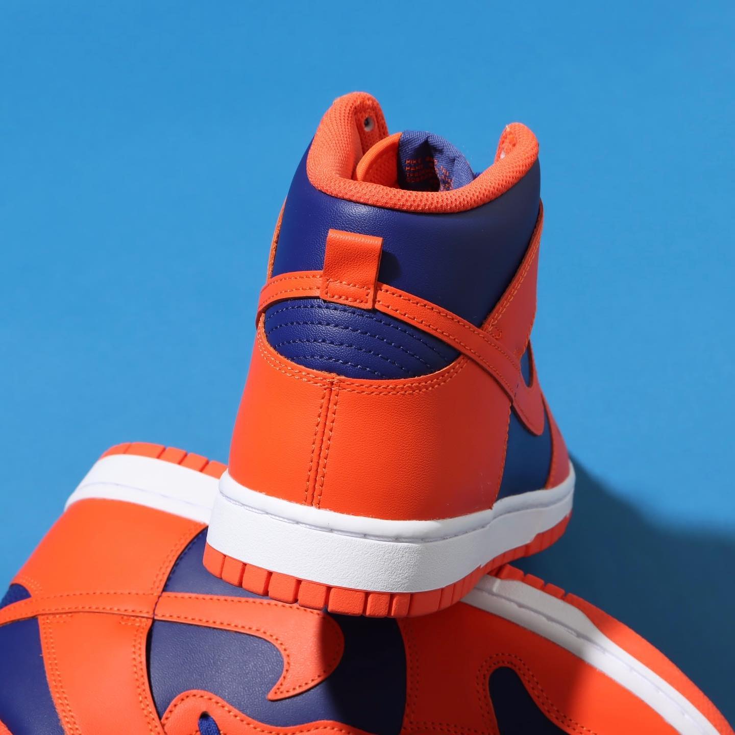 整双鞋以蓝橙撞色呈现,酷似 “纽约尼克斯” 配色,白色中底搭配橙色外底,完成整双鞋设计。