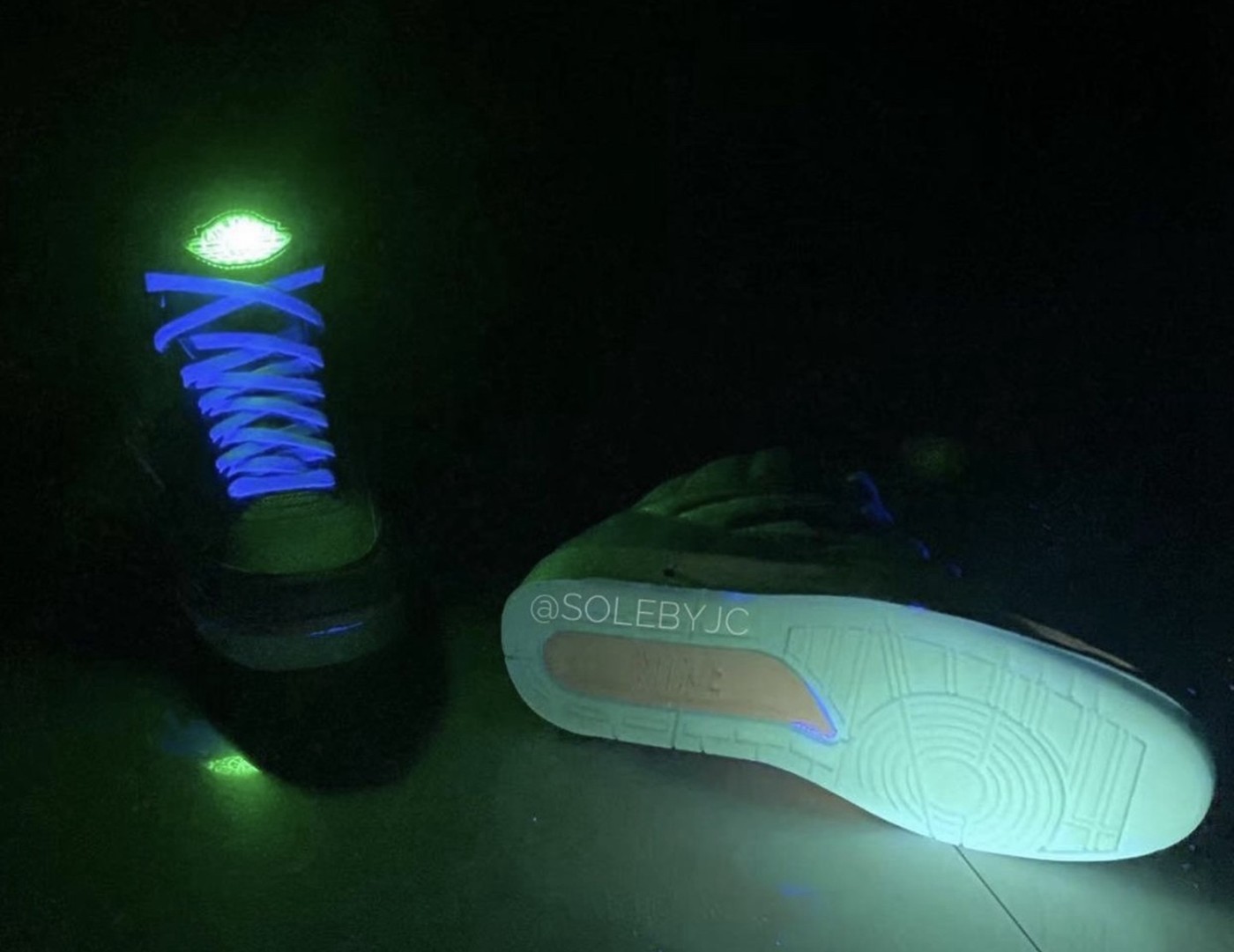 鞋舌内侧依旧是夜光材质制作的 J Balvin 个人品牌 Logo,看来这位哥伦比亚嘻哈歌手还是非常喜欢将夜光材质添加在鞋上。
