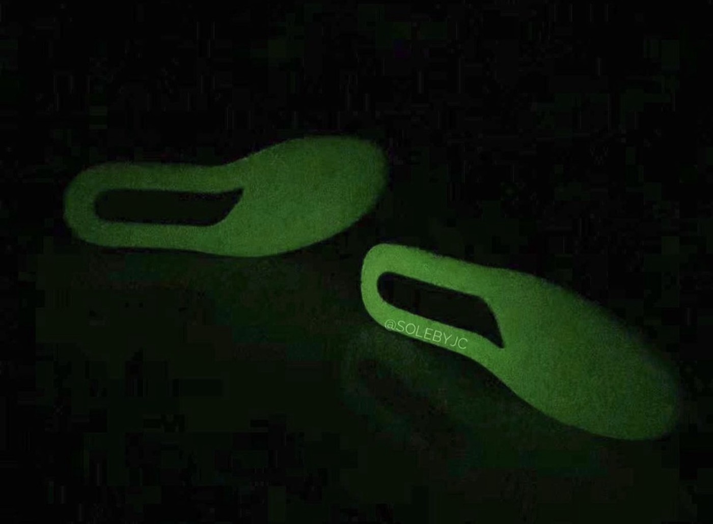 光线更暗的环境下夜光变得尤为明显,就连外底也是整个采用夜光材质,这双鞋要是晚上穿出去无疑是炸街和吸睛的好选择。