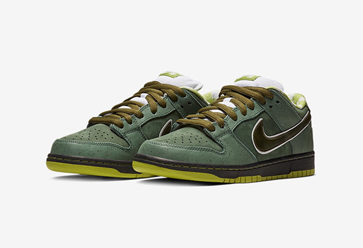 同年,双方再次合作打造更为稀有的店铺限定「绿龙虾」,在美国 Concepts 和美国 Nike 官网少量发售。