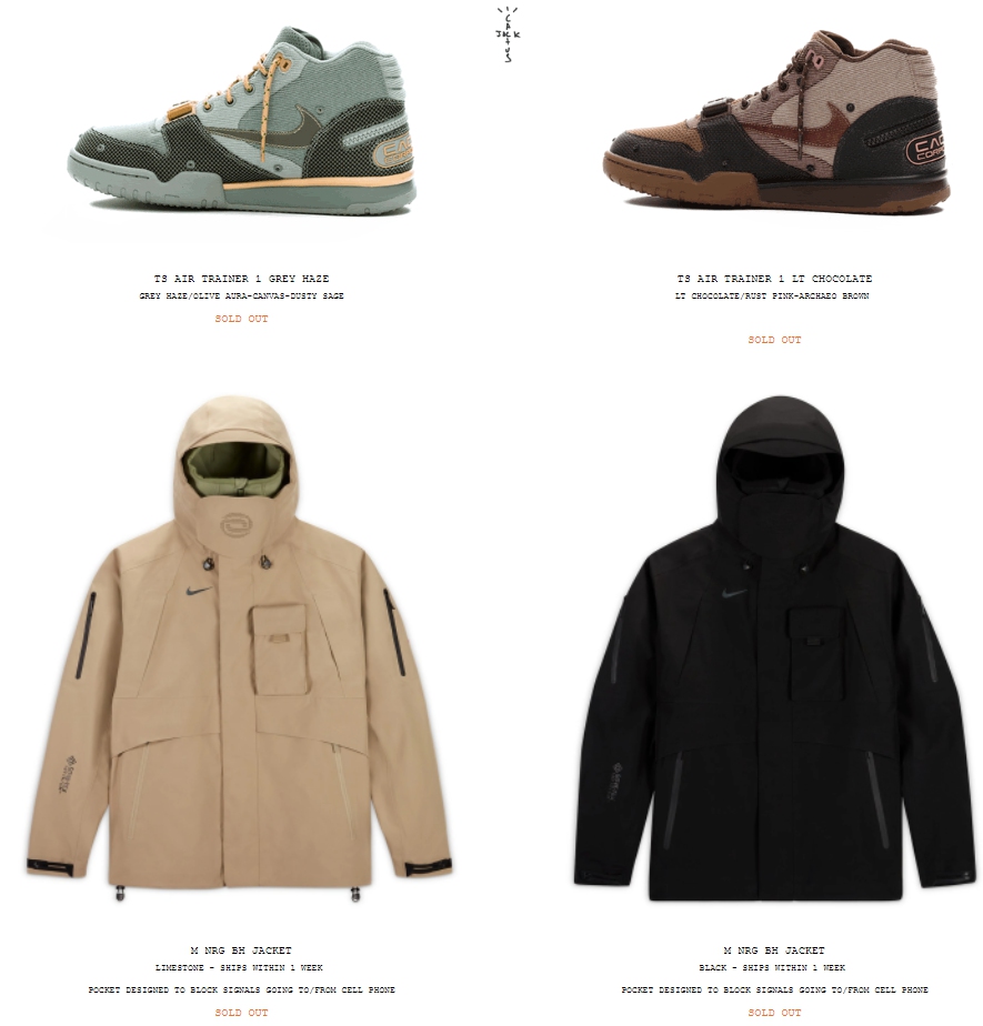 就在今早!此前多次曝光的 Travis Scott x Nike Air Trainer 1 两款配色在 TS 官网 shop.travisscott.com 突袭发售!