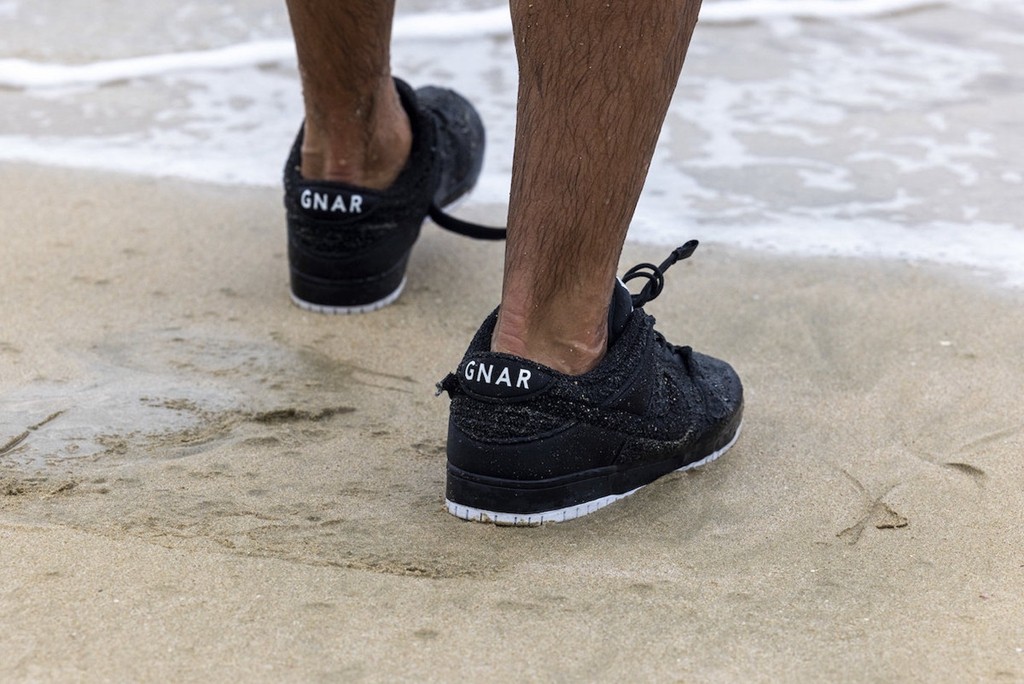 其他细节也颇为独特,鞋舌以 Gnarhunters 品牌 Logo 代替 Nike SB 标签,后跟也有品牌缩写与之呼应。